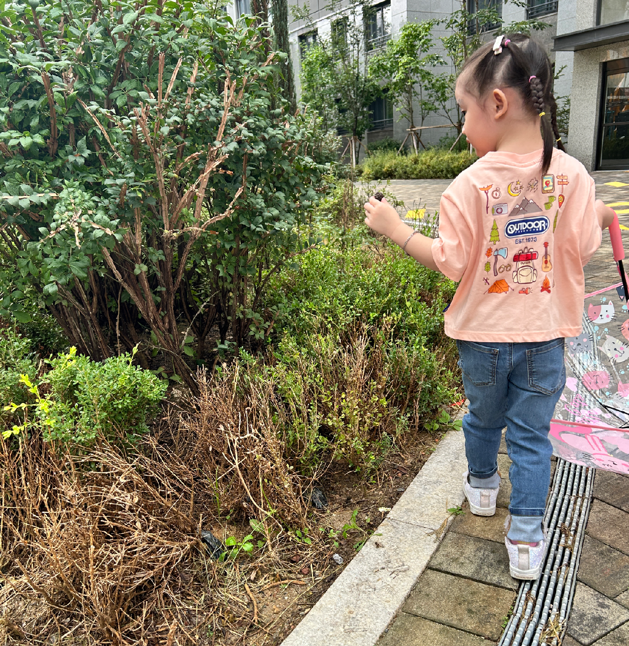 나는 40여 년을 살아내면서 저렇게 흙을 맘껏 만질 기회가 있었던가. 자연 요소에 살을 문대면서 세상 다 가진 것처럼 깔깔대본 적이 있었던가. 자연과 하나가 되어본 적이 없는 밀레니얼 세대 엄마는 이제부터라도 아이들이 애정하는 자연 요소에 슬쩍 껴보기로 남몰래 결심해 본다. 살면서 해본 적 없던 자연 속 몸짓들에 덩달아 조금씩 취해가는 중이다. 아이들이 자연 공간 속으로 들어갈 때마다, 그 발랄한 발걸음에 싱그러워진다.