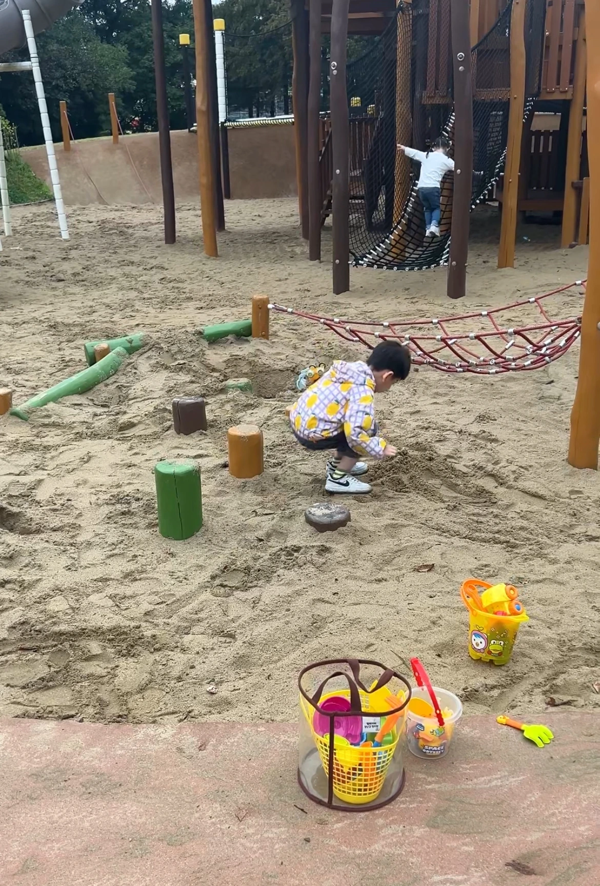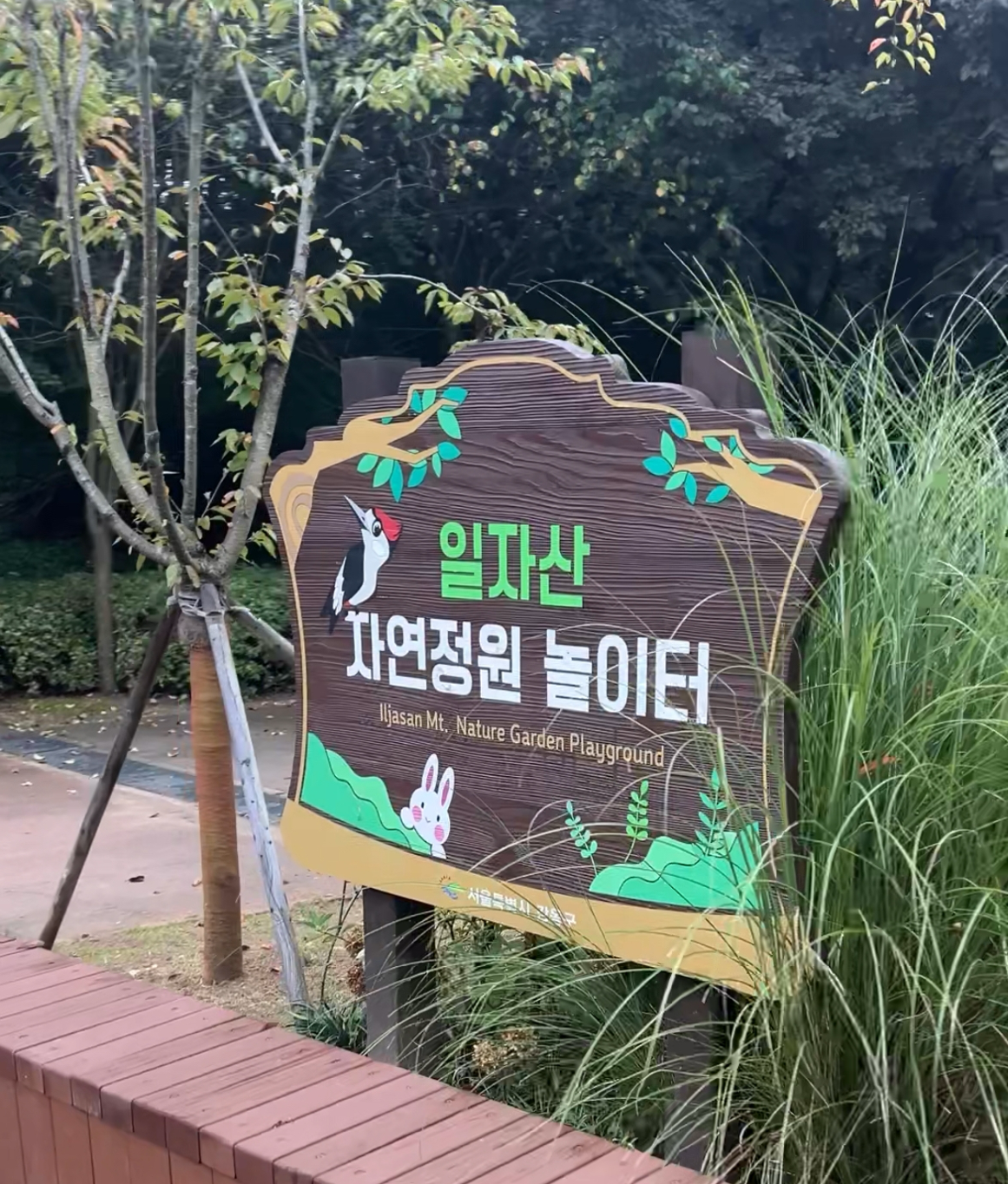 오전에 이미 키즈카페에 한 차례 다녀왔는데, 아이들이 낮잠도 거르고 시무룩했던 날이다. 얘들아, 그렇다고 키즈카페에 또 갈 수는 없지 않겠니? 집에서 워크북을 끼적거리기에는 아무래도 가을볕이 너무 좋아 보였다. 집 앞 놀이터는 너무 진부해서 패스. 산책하는 김에 문방구나 아이스크림 가게 따위를 찍고 돌아오기엔 놀이 갈증이 해소되지 않을 게 분명했다. 고민 끝에 나간 자연 놀이터는 키즈카페 1차 체크인에도 해소되지 않았던 아이들의 빵빵한 놀이 본능을 한가득 채워주기에 충분했다.