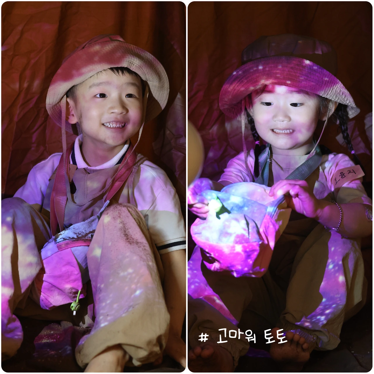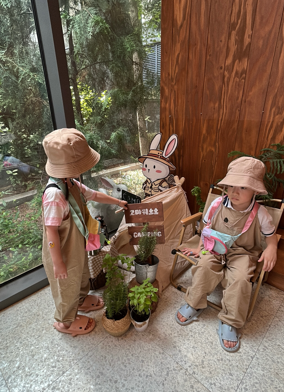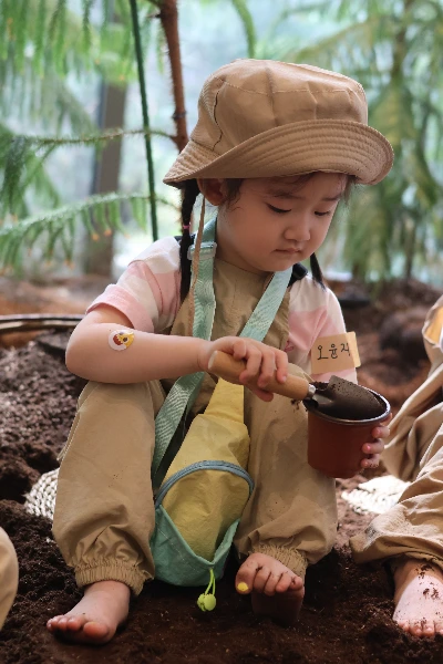 실내 숲체험이라는 콘셉트가 신박해서 자발적으로 똑똑 문을 두드렸던 곳. 어린이집에서는 간헐적으로 숲체험에 가곤 하는데 내가 직접 두 아이 데리고 숲으로 향해본 적은 없어서 막막했던 참에 테마별로 흙놀이가 진행된다고 해서 마음이 끌렸다. '예민한 첫째가 맨발로 흙에 안 들어가면 어떡하지?', '둘째가 아직 어린데 엄마랑 안 떨어지려고 하면 어떡하지?' 각종 걱정 콜라보가 밀려드는 것도 잠시, 아이들은 1초의 망설임도 없이 흙으로, 실내 숲으로 저벅저벅 걸어 들어갔다. 손으로, 발로 흙을 문대는 몸짓 그 자체가 내게도 힐링이었다. 진짜 숲이 아니래도 아이들은 이미 자연과 하나 되는 법을 알고 있었다. 가르쳐주지 않아도 할 수 있는 영역이었다.