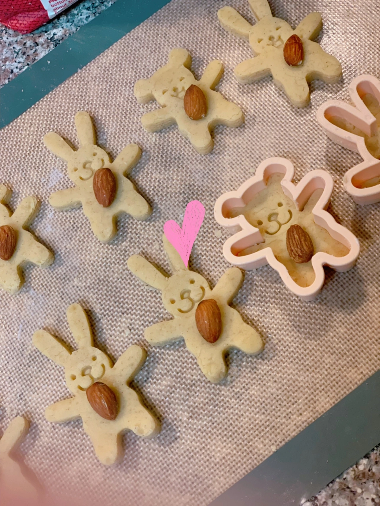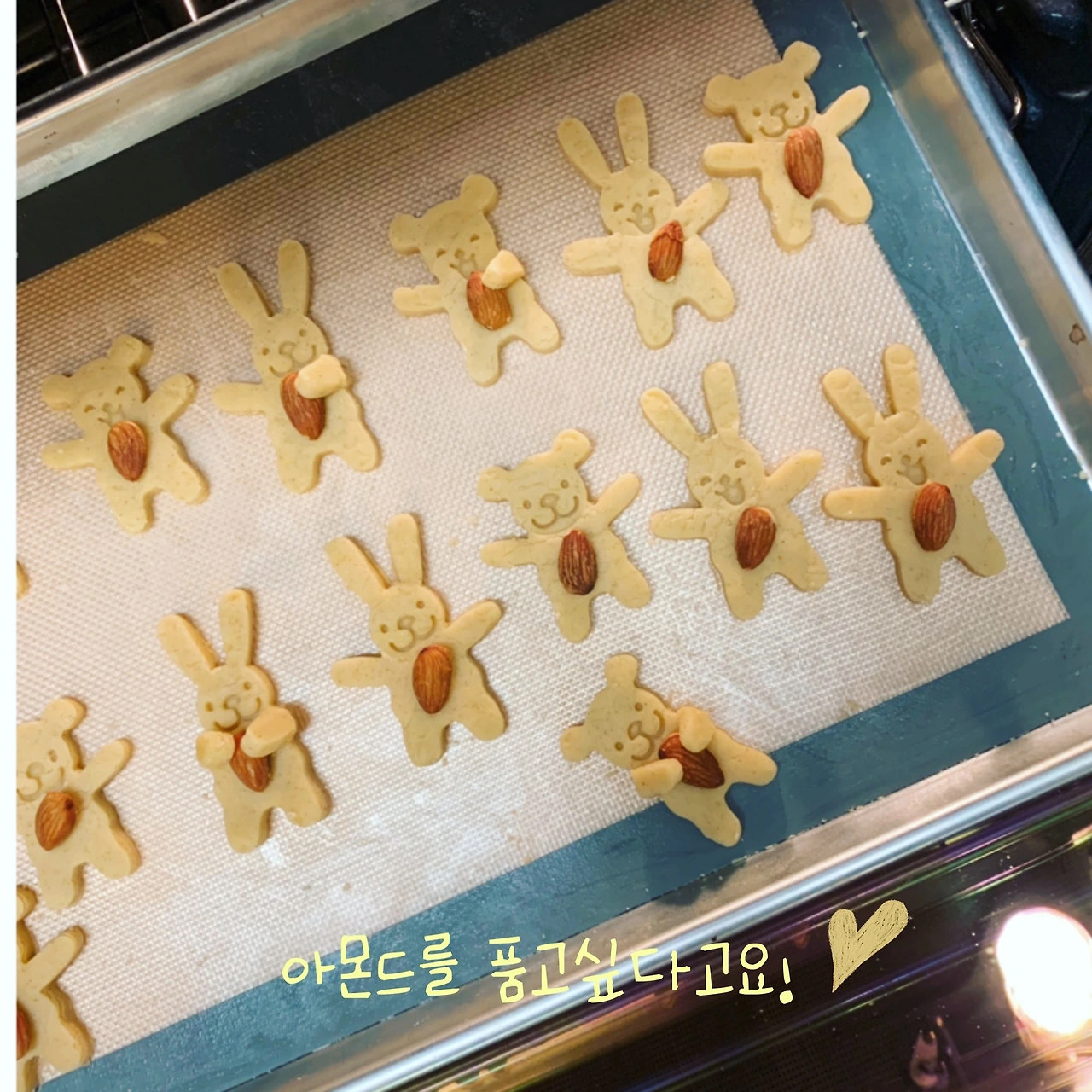 3월의 마지막 날, 쿠키를 구웠다. 그냥 쿠키가 아니라, 결혼 100일 차 기념일 쿠키. 남편을 위한 고가의 선물도 고려해볼 만하겠으나 빵순이, 카페 덕후에겐 커피와 어울릴 쿠키 생산 공정에 돌입하는 게 더 어울리는 듯했다. 기념일이라는 것이 담고있는 상징적인 매력, 남들 눈에는 당사자들만의 오그라들 것 같은 이벤트일지라도, 평범한 날들의 연속에 그나마 작은 설렘을 보탤 수 있는 최적의 타이밍 아니던가. 이왕 특별하게 기억하기로 한 날, 최대한 예쁘고 앙증맞은 모양새로 부부만의 기록에 귀염성을 더하고 싶어서 특별한 준비물 공개! 한국에서 보스턴까지 고이고이 모셔온 '아품토', '아품곰' 틀을 꺼내놨다. 줄임말을 풀어보자면, '아몬드를 품은 토끼'랑 '아몬드를 품은 곰돌이'. 버터에 설탕을 더하고, 노른자와 정성 들여 친 가루까지 더해서 마음을 들여 토끼와 곰돌이를 찍어냈다.