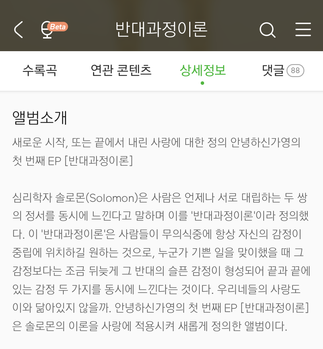 가수 안녕하신가영은 <반대과정이론>에서 이렇게 노래부른다. "혼자지만 혼자가 아니라고 느꼈던 순간과 / 혼자가 아니지만 혼자라고 느꼈던 순간에서 / 내가 너를 사랑하지 않을 수도 있었다면 / 너도 나를 사랑했을텐데." 살면서 무수히 느끼는 '반대'의 심정 중에 특히 관계에 초점을 맞췄다. 이것은 이것이고, 이것이지만 이것이 또 아니다... 대학교 1학년 때 외솔관에서 들었던 '철학입문' 강의가 갑자기 불현듯 스쳐가면서 "오오, 이게 무슨 선문답인가" 생각했다. 가사를 곱씹어보다가 약 3분 정도 눈알을 팽글팽글 회전시켜본다.