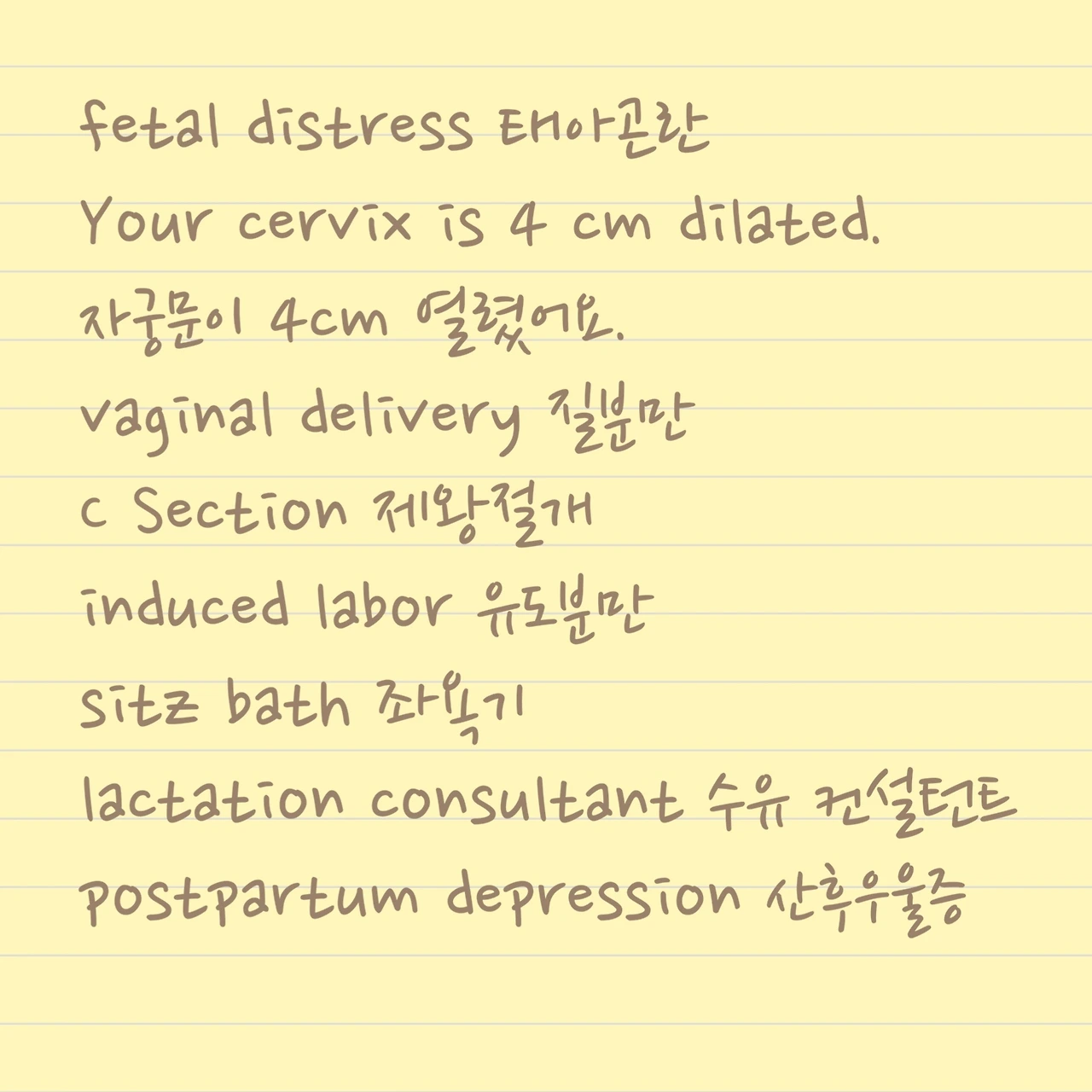 마음이 급해진 나는 미국에서 출산하신 분들의 블로그를 열심히 탐독했고 임신 출산과 관련된 산부인과 용어를 모조리 출력해 필요할 때마다 머릿속에 입력해 둬야겠다고 결심했다.