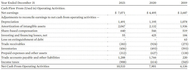 연간 10B$ 규모 현금을 영업활동으로 벌어들였다. 애브비가 23B$ 규모였다.