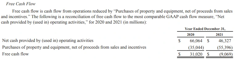 아마존은 연간 60조원 규모의 현금을 영업활동을 통해서 벌어들였다.