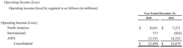 아마존의 영업이익률이 5.3%였는데 북미 영업이익률이 2.6%, 해외는 적자, AWS 영업이익률이 29.8%를 기록했다.