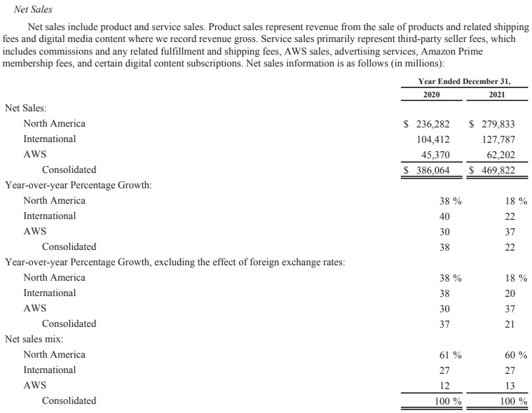 전체 매출 470B$ 중 온라인 스토어가 47%를 차지하고 있고 북미 매출이 60% 이상이다 정도는 외우고 다니자. 전체 영업이익률은 5%대인데 영업이익 4분의 3이 AWS클라우드에서 나온다.