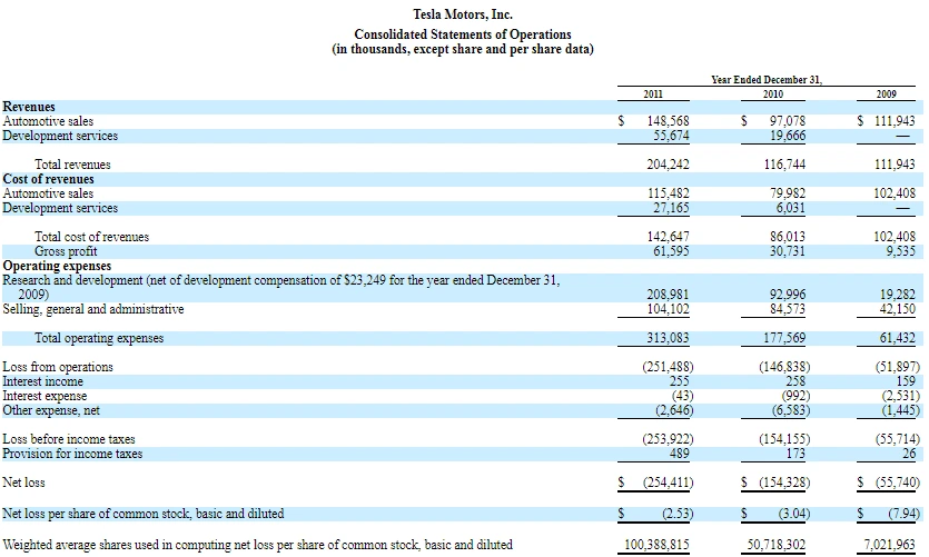 추가로 10년 전 테슬라는 어땠는지 궁금하니 한번 2011년 자료도 봐보자.