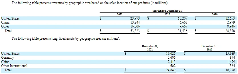 그리고 지역별 장기보유자산을 보여주고 있다. 미국 77%, 독일 11%, 중국 10%, 기타 2%를 차지하고 있다.