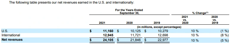 지역별 수익을 보면 미국이 46%, 해외가 54%를 차지했다.