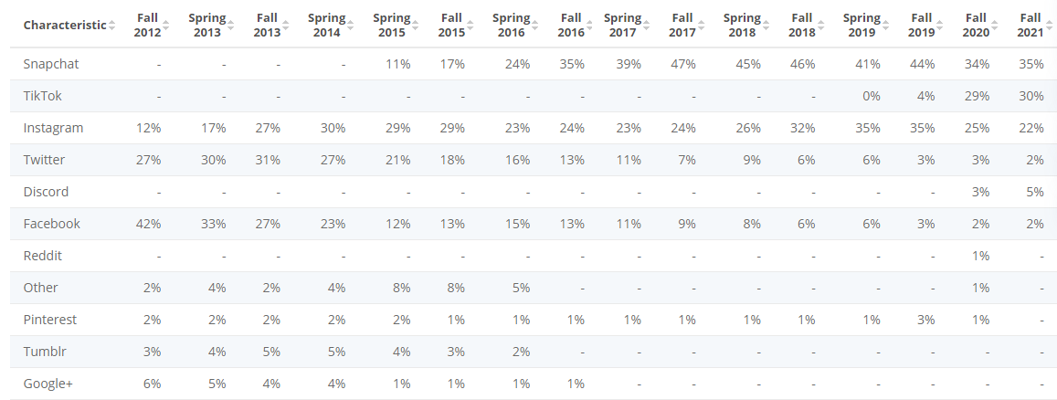 다만 미국 10대 SNS 랭킹에서는 스냅챗이나 틱톡에 밀리고 있다. 그래도 인스타그램이 3위 정도를 차지하고 있나보다. 2012년에는 페이스북이 그래도 1위였는데 저때도 나는 이미 10대가 아니였다는 생각이 잠깐 스쳐지나간다.