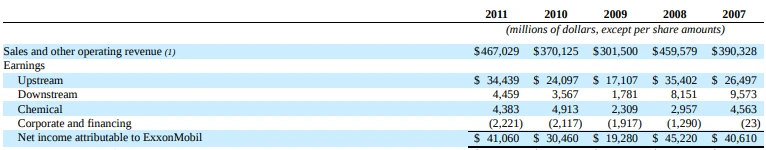 2011년 467B$ 매출을 보였다. 이익단으로 봤을때 10년 사이 상류부문 매출비중이 80%에서 61%로 줄었고, 하류부문 매출비중이 10%에서 8%로 줄었고, 화학 매출비중이 10%에서 30%로 늘었다.