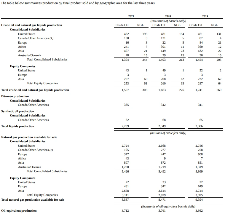 원유와 천연가스를 합쳐서 생각해보면 미국에서 총 3,600만 BOE/D 정도가 생산되고 있고, 엑슨모빌은 미국에서 100만 BOE/D 정도 원유와 천연가스를 생산한 꼴이고, 미국 원유와 천연가스의 약 3%를 생산한 꼴이 맞긴 한가 보다.