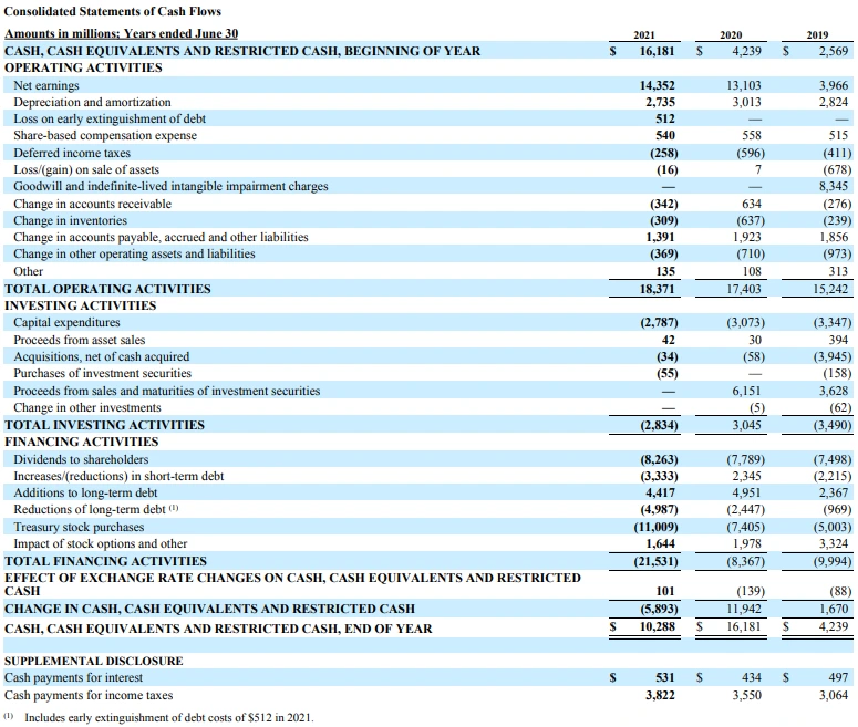 연간 18B$ 규모의 현금을 영업활동을 통해서 벌어들이고 있다.