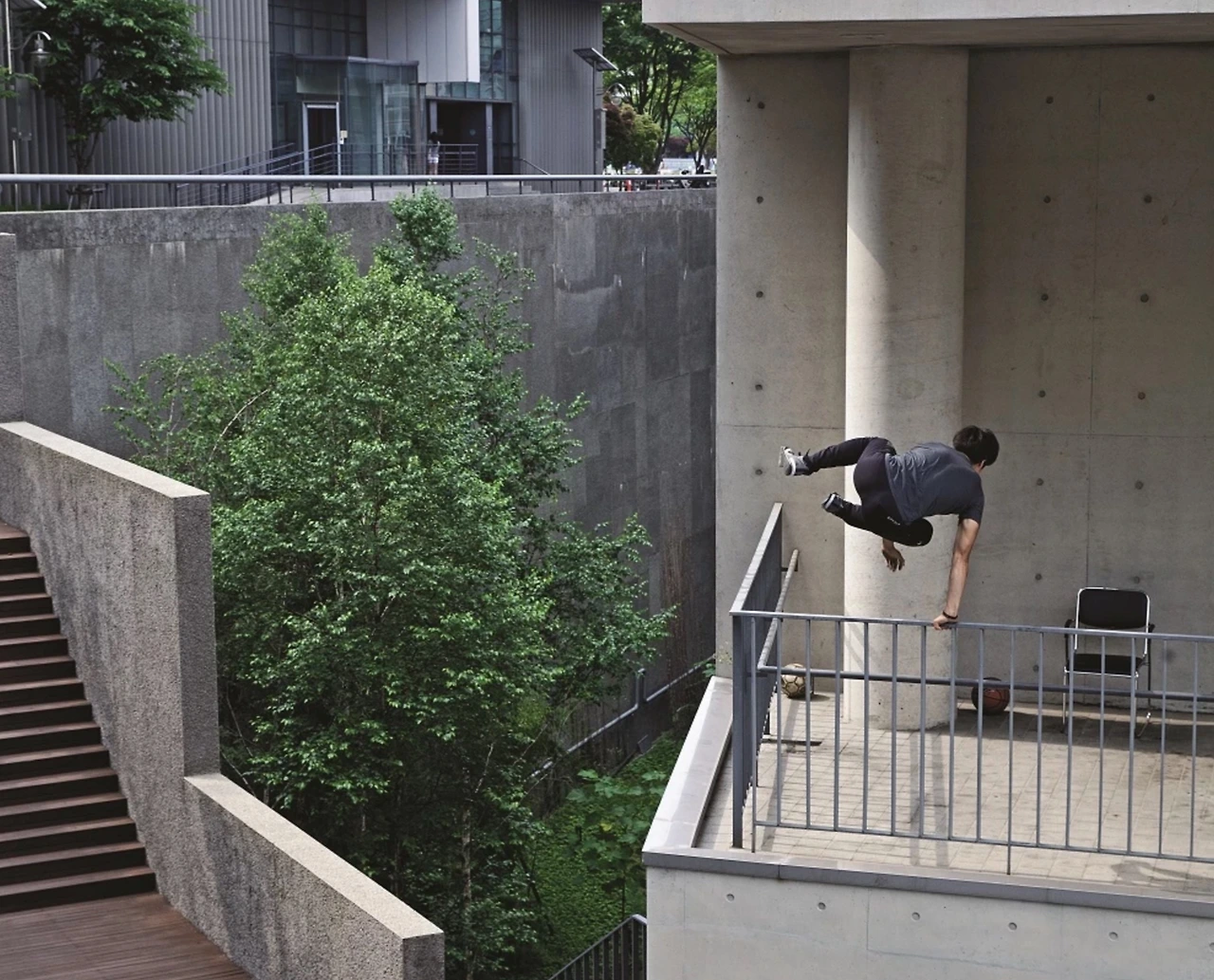 우선 파쿠르의 허와 실을 알기에. 미디어 속 파쿠르 트레이서들은 늘 목숨 걸고 위험한 도전에 뛰어드는 불나방처럼 묘사되곤 한다. 누구나 할 수 없는 일생일대의 도전을 일삼는, 극도로 자극적인 모습으로 말이다. 반면 J를 통해 본 파쿠르는 그런 자극적인 움직임만이 다가 아니었다. 파쿠르는 장애물에 맞서 효율적으로 이동하는 수단이자 두려움을 마주하는 정신적 수련, 자신의 몸에 맞게 움직이는 일상의 운동이다. 실은 우리 대부분이 이미 파쿠르를 해봤는데 어린 시절 기고 구르고 뛰던 모든 움직임이 파쿠르였다. J의 수업에서도 어린아이, 할머니, 장애인 등 다양한 몸들이 파쿠르를 배우고 움직이는 모습을 볼 때면 파쿠르의 가치와 철학에 비해 그저 극단적인 스포츠로 미디어에 소비되는 게 새삼 씁쓸해지곤 한다.
