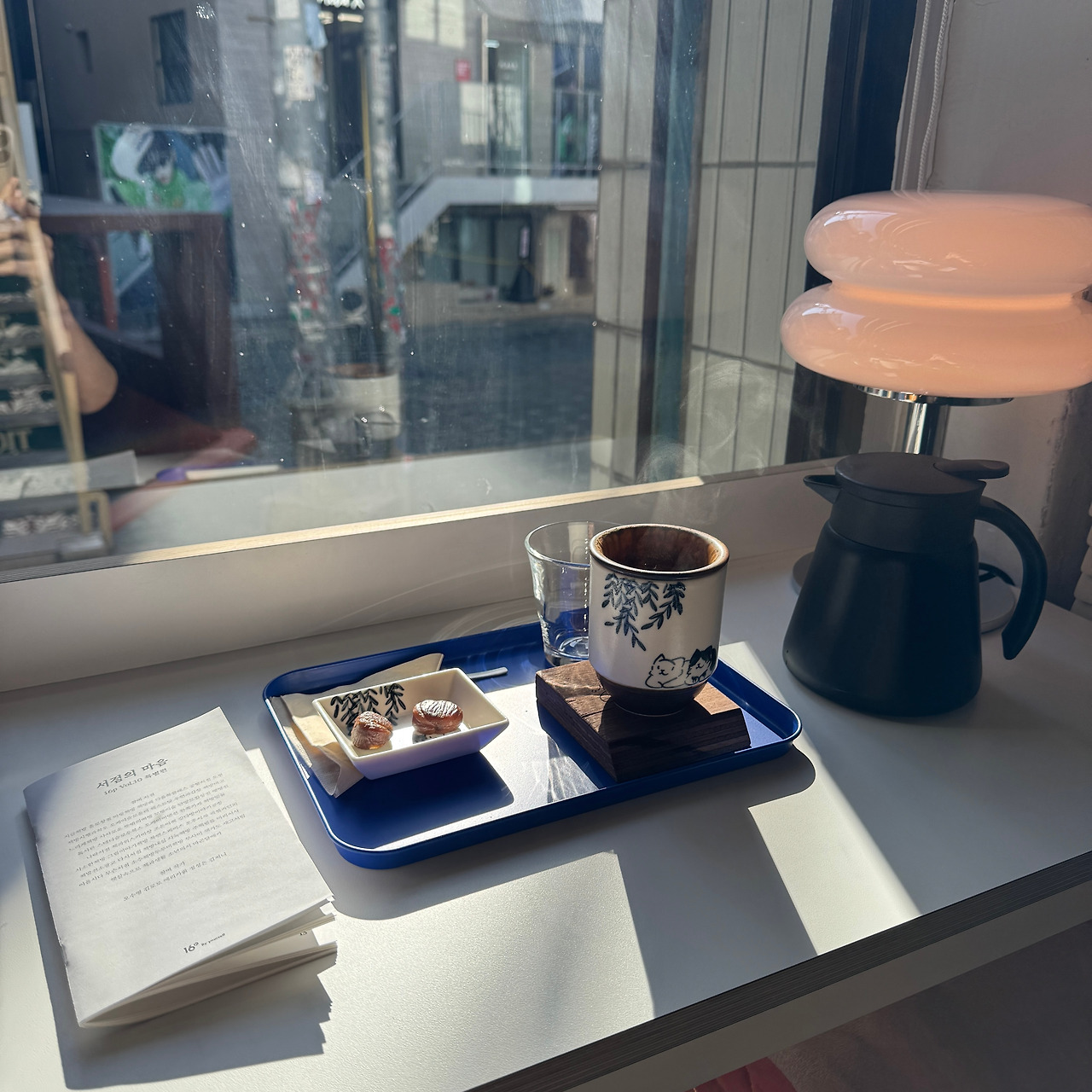 지난 1월, <술책방 헬로>의 인스타그램에 매거진《16p》 10호 특별편 『서점의 마음』을 소개하는 글이 올라왔다. 49개의 서점지기들이 뽑은 2024년의 문장들이라는 것에 물론 관심이 갔지만, "소장가치가 뿜뿜"이라는 말에 혹했던 것도 사실이었다. 혹시 소장할 수 있는 방법이 없을지 조심스레 메시지를 드렸고, 한 권이 남아 있다고 헬로에 오면 이야기하라는 회신을 주셨다. 그게 1월 24일이었는데 이제서야 방문을 할 수 있었다. 3주 이상을 잊지 않고 보관해 주신 책방지기님께 진심으로 감사드린다. 미래의 <책방2036> 책방지기도 독자의 마음을 알아주고 기다려줄 수 있는 그런 사람이 되면 좋겠다 생각했다. 창가에 앉아 따뜻한 햇살을 맞으며 누리는 차와 글 덕분에 몸과 마음이 따뜻해진 기분이다. 티푸드로 곁들여진 조린 밤도 아름다웠다. 49개의 책방 중 가본 곳이 하나도 없다는 사실에 민망했고, 언젠가 한 번씩은 꼭 방문해 봐야겠다는 마음이 생겼다.