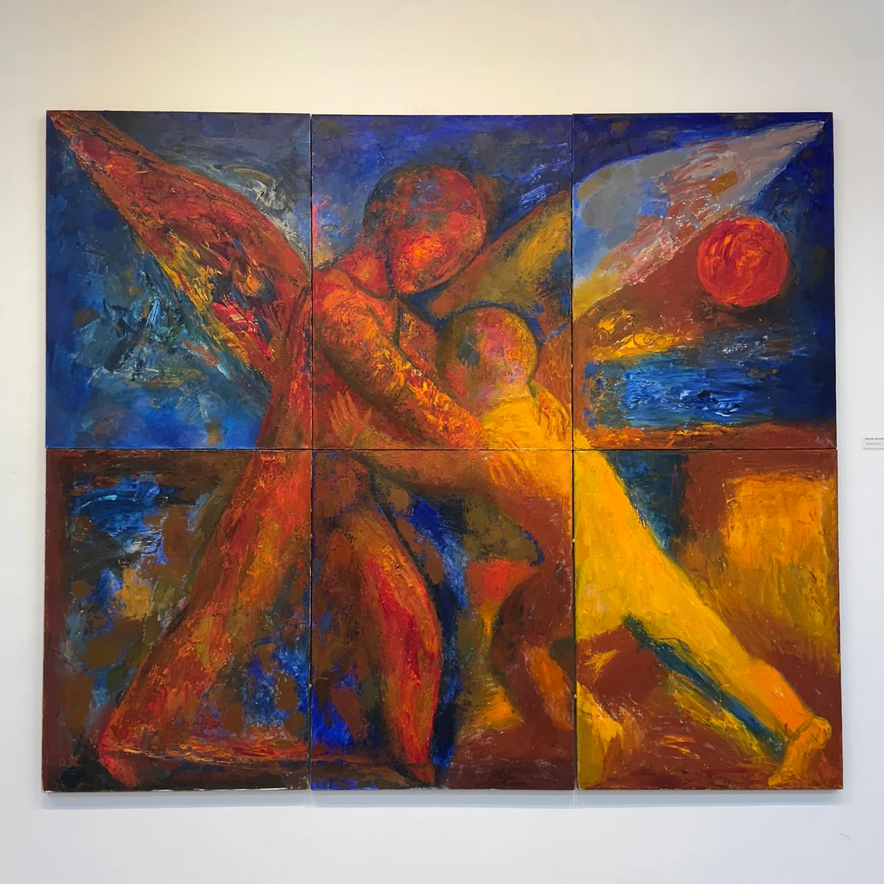 아이폰 카메라의 고정된 프레임에 담기느라, 그림 각각의 실제 크기는 가늠하기 어렵게 되었지만, 마음에 들었던(소유하고 싶었던) 세 점의 그림이다. <산책>은 러시아와 우크라이나에서 어렵지 않게, 종종 마주쳤던 익숙한 풍경이고, <천사와 싸우는 야곱>은 강렬한 색채가 눈과 마음을 붙잡았다. <결국 날아오르다>를 보고는 무슨 이유에서인지는 모르겠지만 미하일 불가코프의 「거장과 마르가리타」가 떠올랐다.
