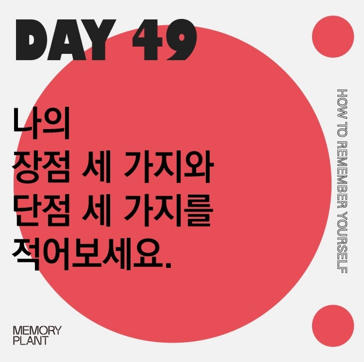 Day 49. 나의 장점 세 가지와 단점 세 가지를 적어보세요.