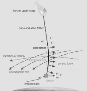 그러나 전기적 밧줄 방식에도 몇 가지 도전 과제가 존재한다. 먼저, 매우 긴 밧줄을 사용해야 하기 때문에 밧줄의 내구성이나 강도, 그리고 우주 공간에서의 진동 및 흔들림을 제어하는 데 기술적 어려움이 따른다. 또한, 밧줄이 다른 우주 물체와 엉키거나 충돌할 가능성이 있으며, 전류가 흐를 때 우주방사선이나 플라즈마 환경에서의 손상 가능성도 존재한다.