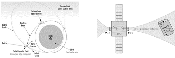 지구 자기력을 이용한 우주쓰레기 처리 방식은 지구의 자기장과 전자기적 힘을 활용하여 우주쓰레기의 궤도를 변경하거나 제거하는 방법이다. 이 방식에서는 우주쓰레기에 강력한 전자기적 장치나 코일을 부착하여, 지구 자기장과 상호작용하게 한다. 전자기적 장치에서 생성된 자기장이나 전류가 지구 자기장과 상호작용하면서, 우주쓰레기에는 전자기력이 작용하게 된다. 이 힘을 통해 쓰레기의 궤도를 서서히 변경하거나 속도를 감소시켜, 궁극적으로 대기권으로 유도하여 소각되도록 한다.