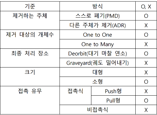 -예방적 접근: 인공위성의 설계 단계에서부터 우주쓰레기 문제를 예방할 수 있는 방법으로, 인공위성 운영 종료 시 발생할 수 있는 쓰레기를 미리 계획된 방식으로 처리할 수 있다.
