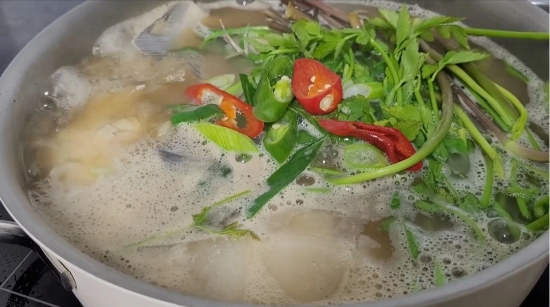 국물이 끓을 때 우럭을 넣고 다진 마늘,