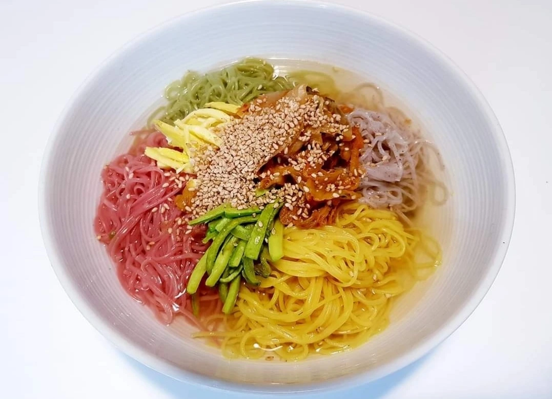 비트, 강황, 부추, 흑미로 만든 수연소면을