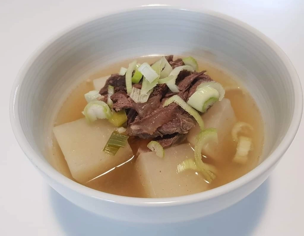 육수에 무를 매우 굵직하게 듬성듬성