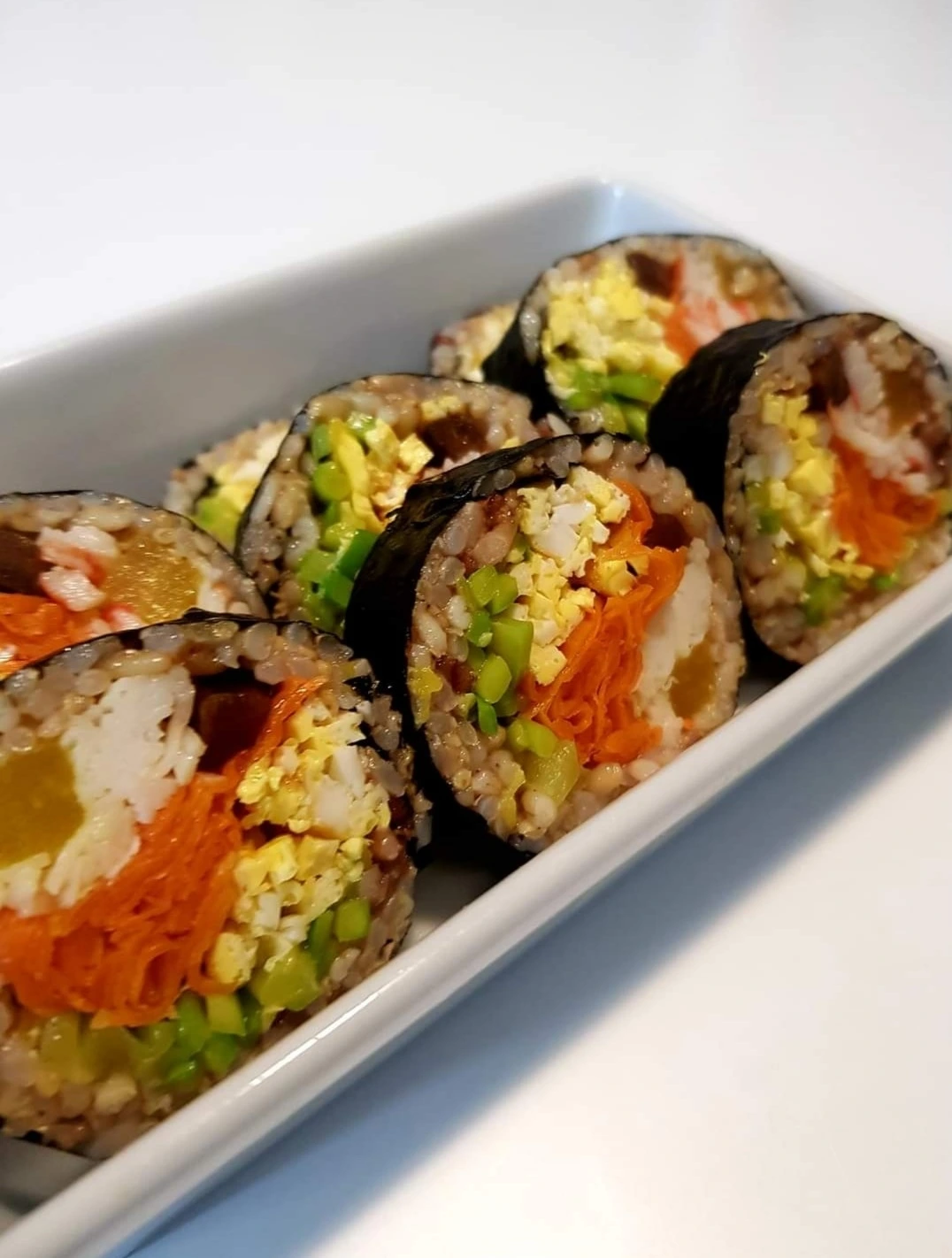 우엉조림, 맛살을 넣고 꼭꼭 말아준다.
