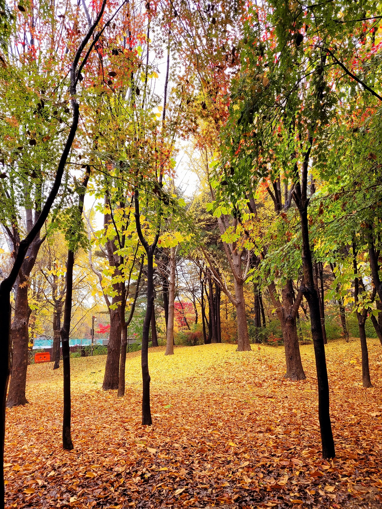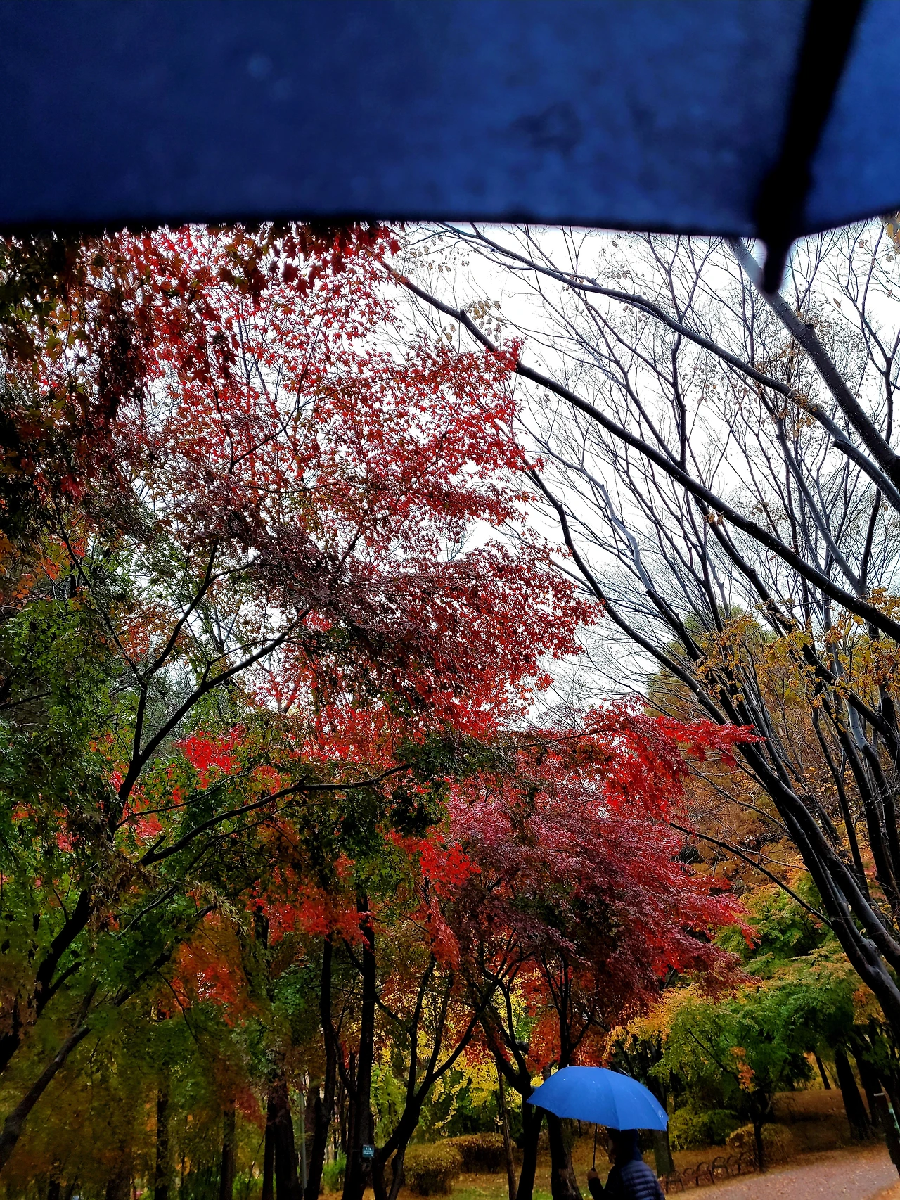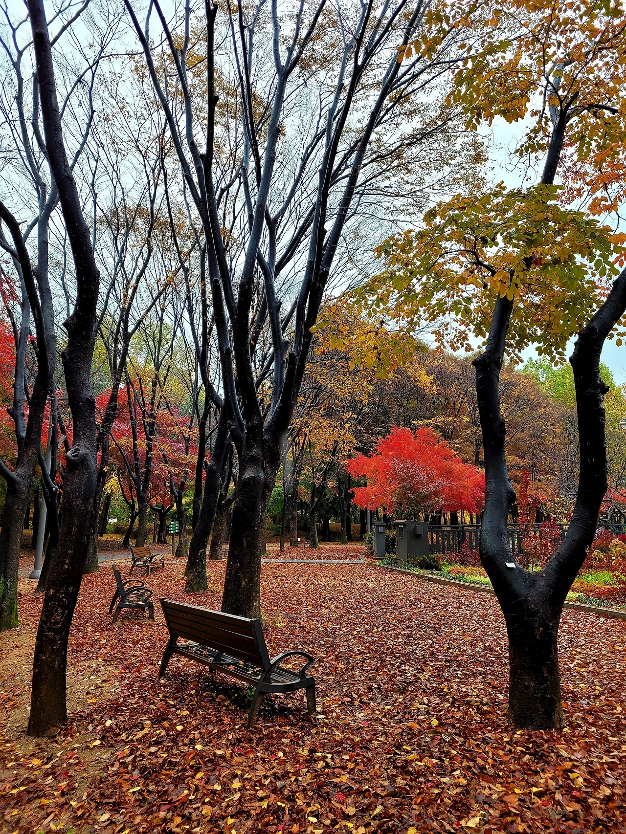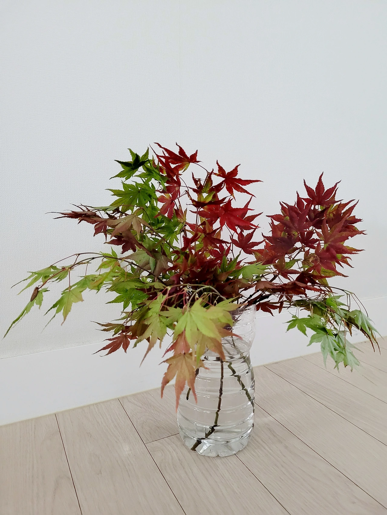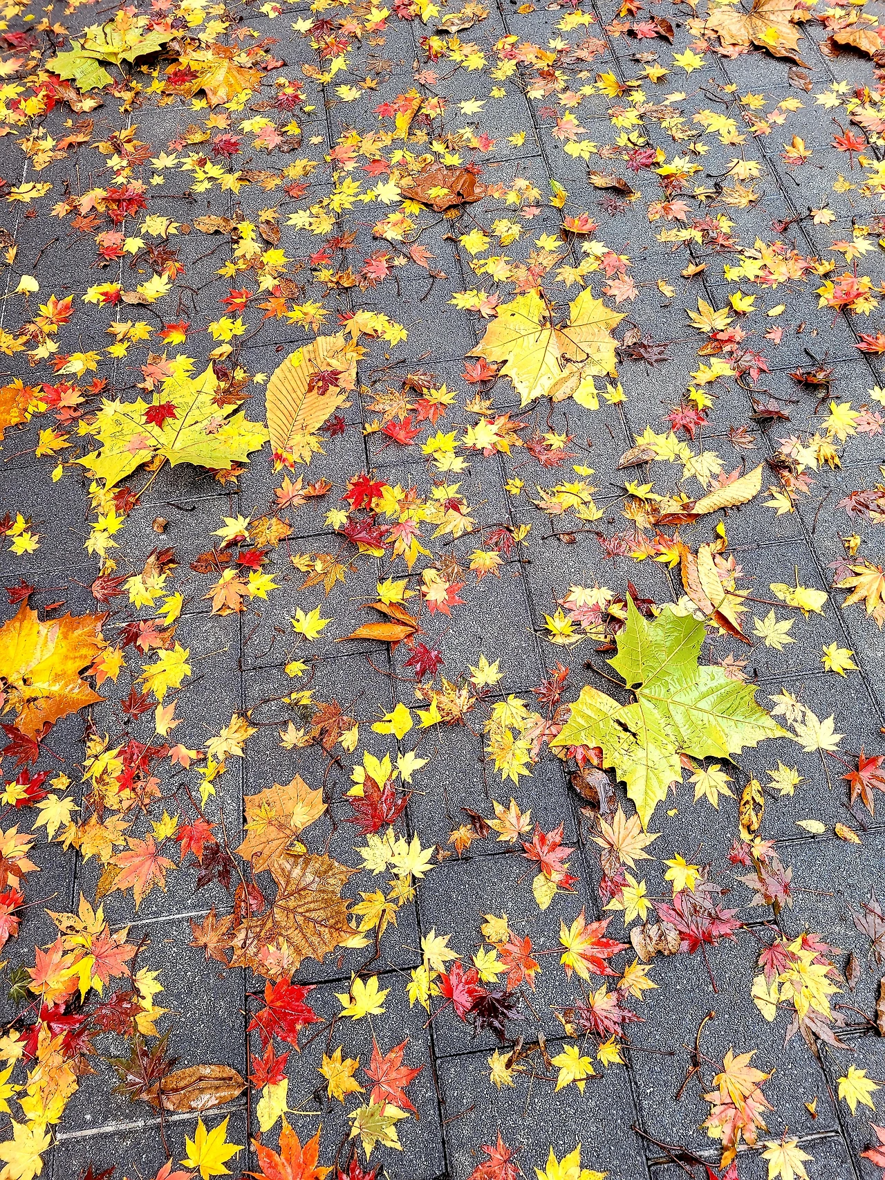 바람에 꺾인 건지 단풍나무 가지가 뭉터기로 떨어져 있다.