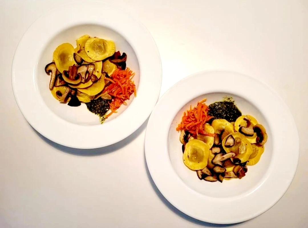 라비올리 하나에 버섯과 당근라페,