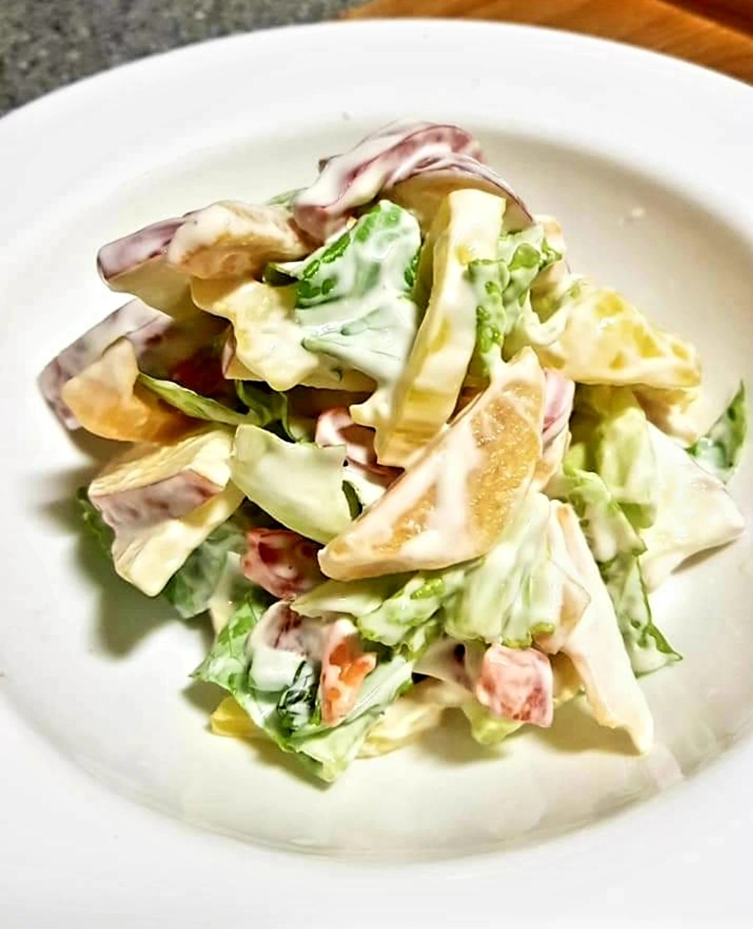 채썰고, 그릭요거트와 레몬즙, 약간의 설탕으로