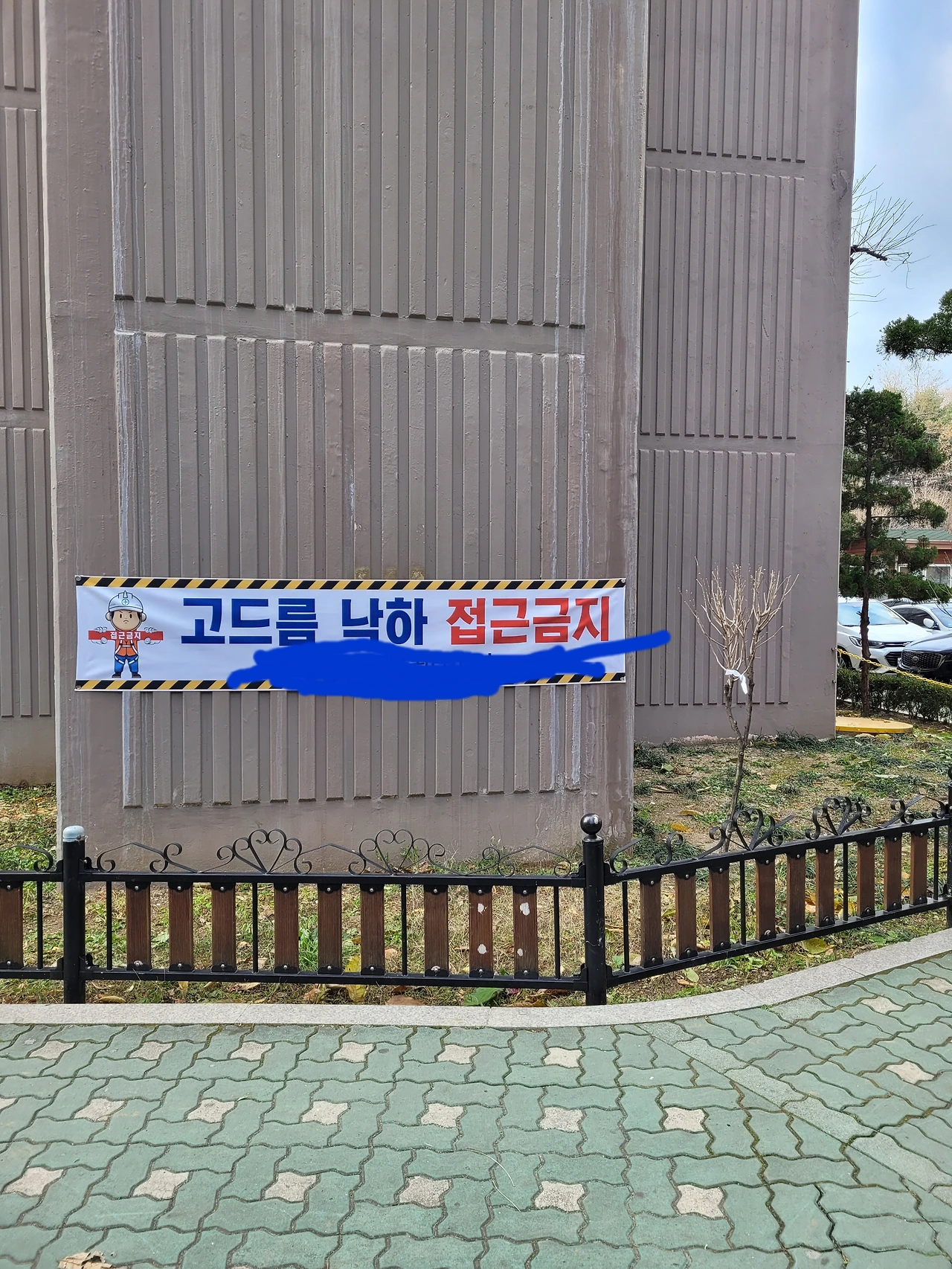 고드름이 생기기 전에 저 플랭카드를 붙이게 되었다.