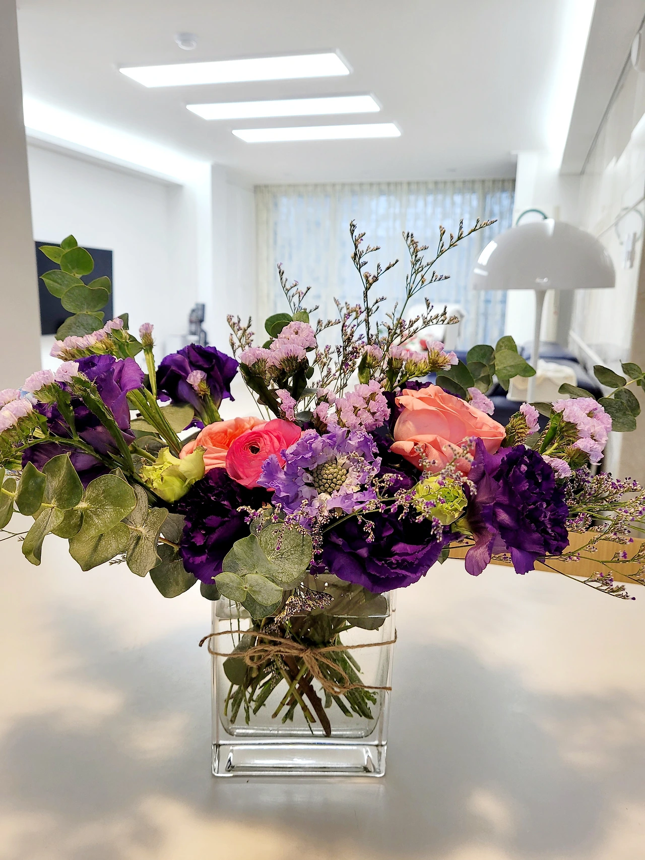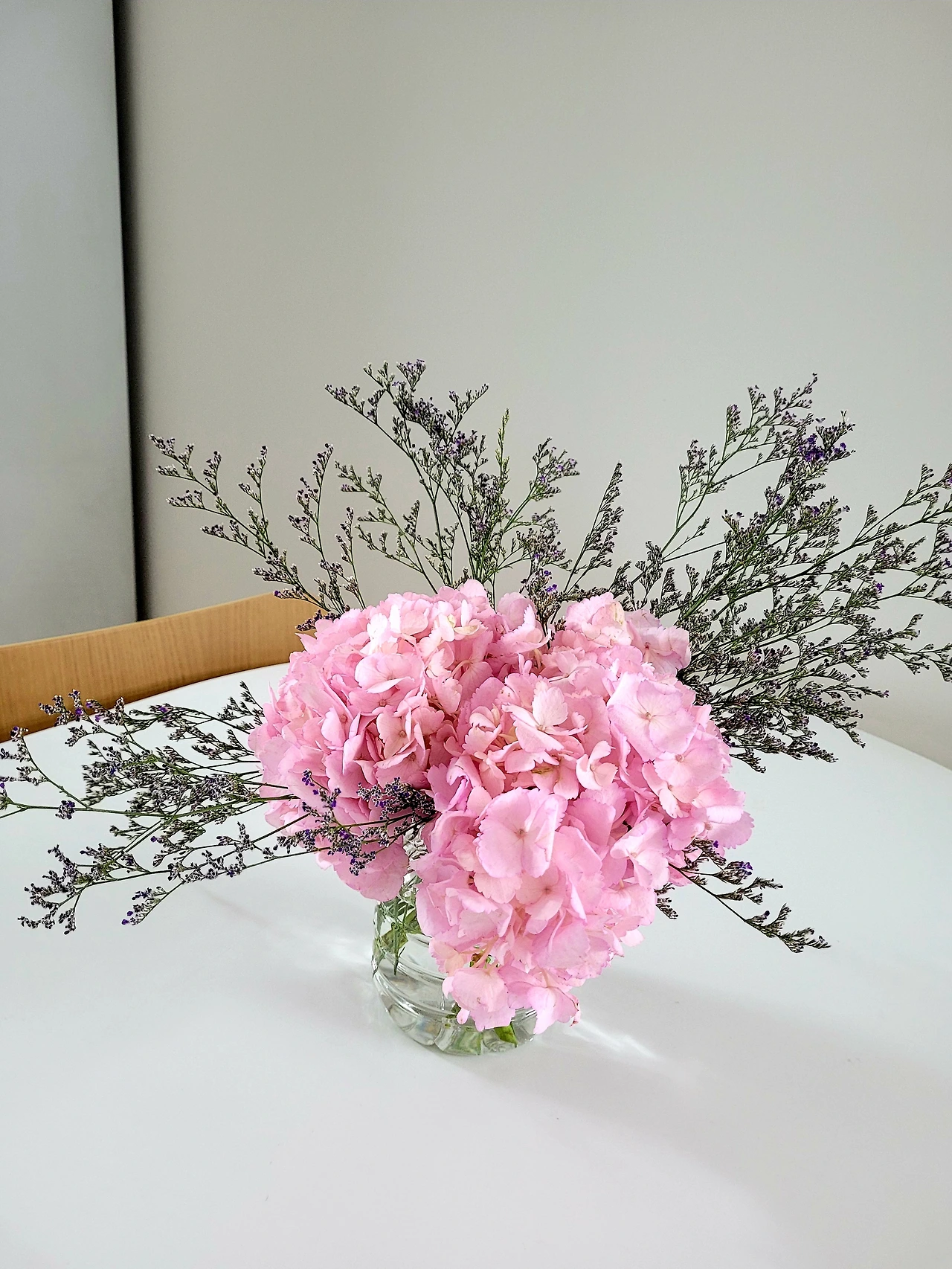 결혼식에서 선물로 나누어 준 꽃을 한다발 들고 와서