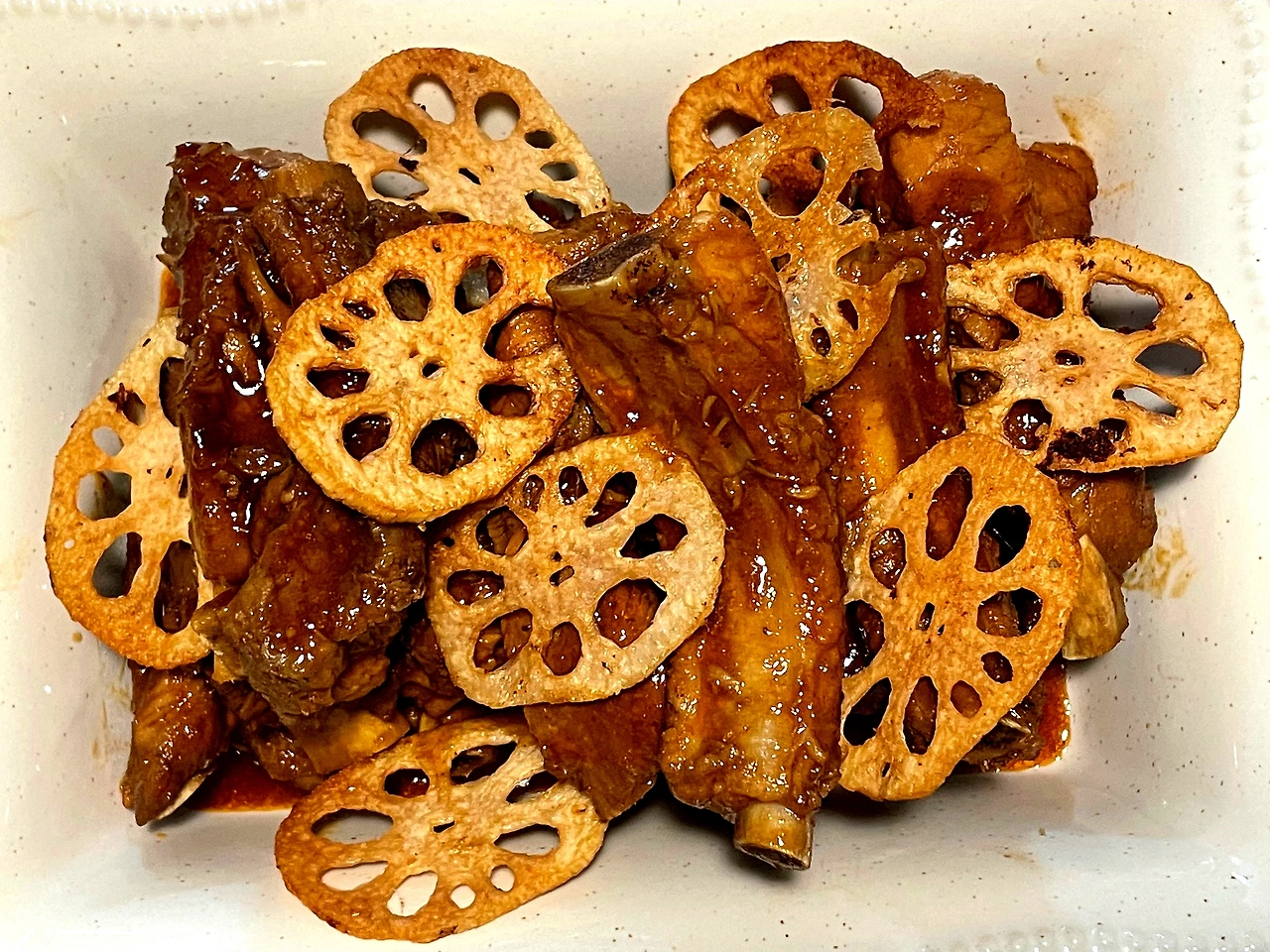 (연근 튀김을 곁들인 등갈비 바베큐)