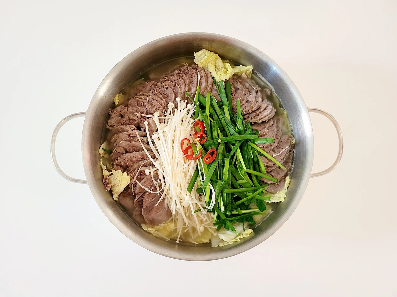 핏물 뺀 사태 두 덩이, 통마늘, 대파, 양파, 대추를 함께 넣고 푹 끓인 후에