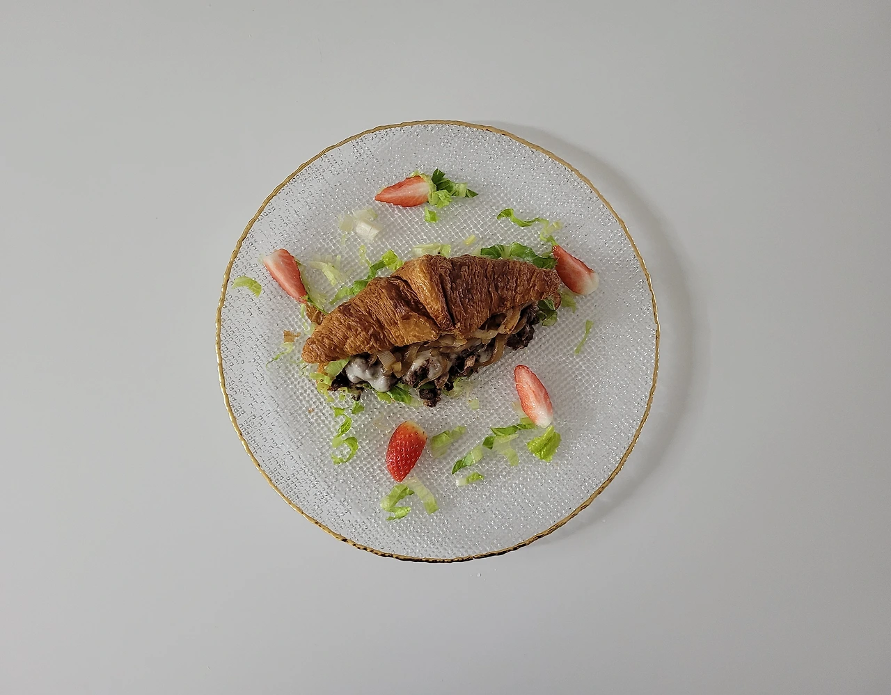 크로아상은 반으로 칼집을 내어 오븐에 살짝 구워 식혀둔다.