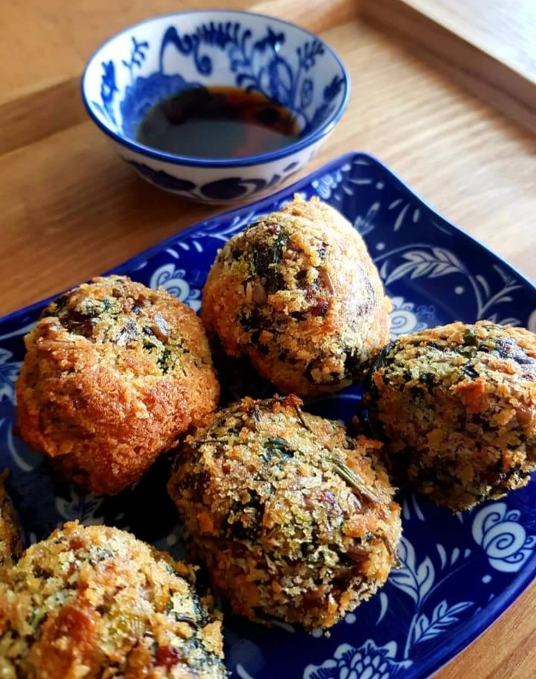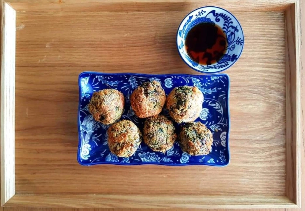 들기름 넣고 동글 동글하고 작은 주먹밥 만들어 계란, 빵가루 입히고 에어프라이어에 굽는다.