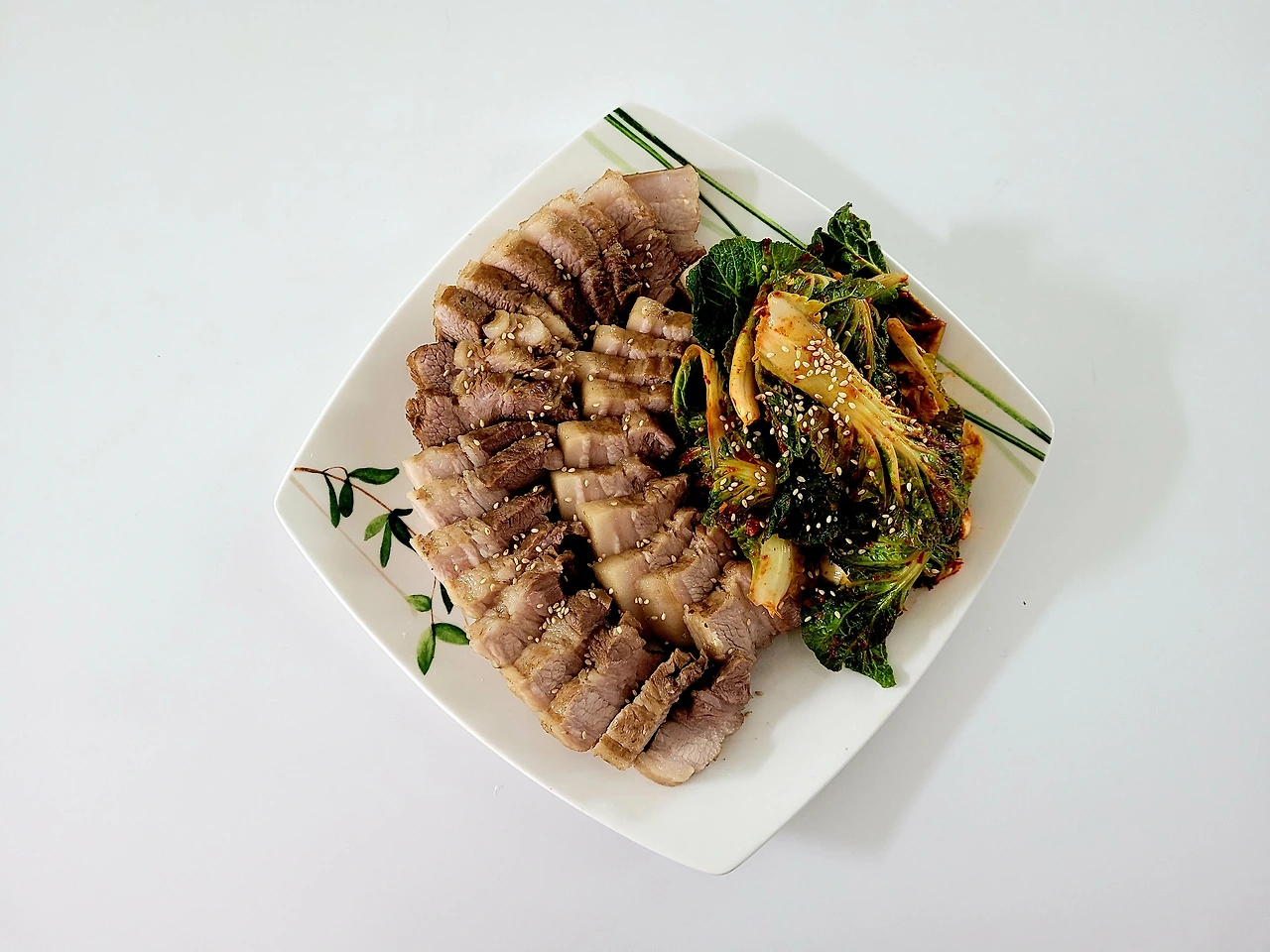 보쌈은 이렇게 큰 잎으로 싸서 먹으라고