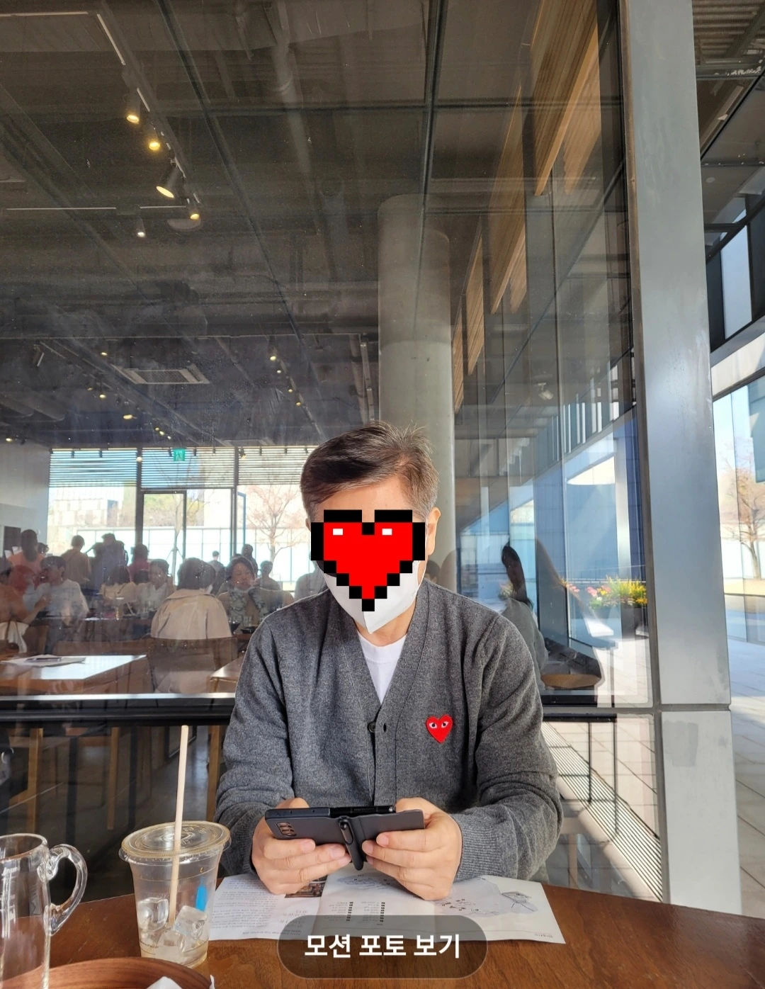 차를 마시려고 남편과 마주 앉았는데 최강동안 김선생께서 염색을 안했더니 모습이 낯설다.