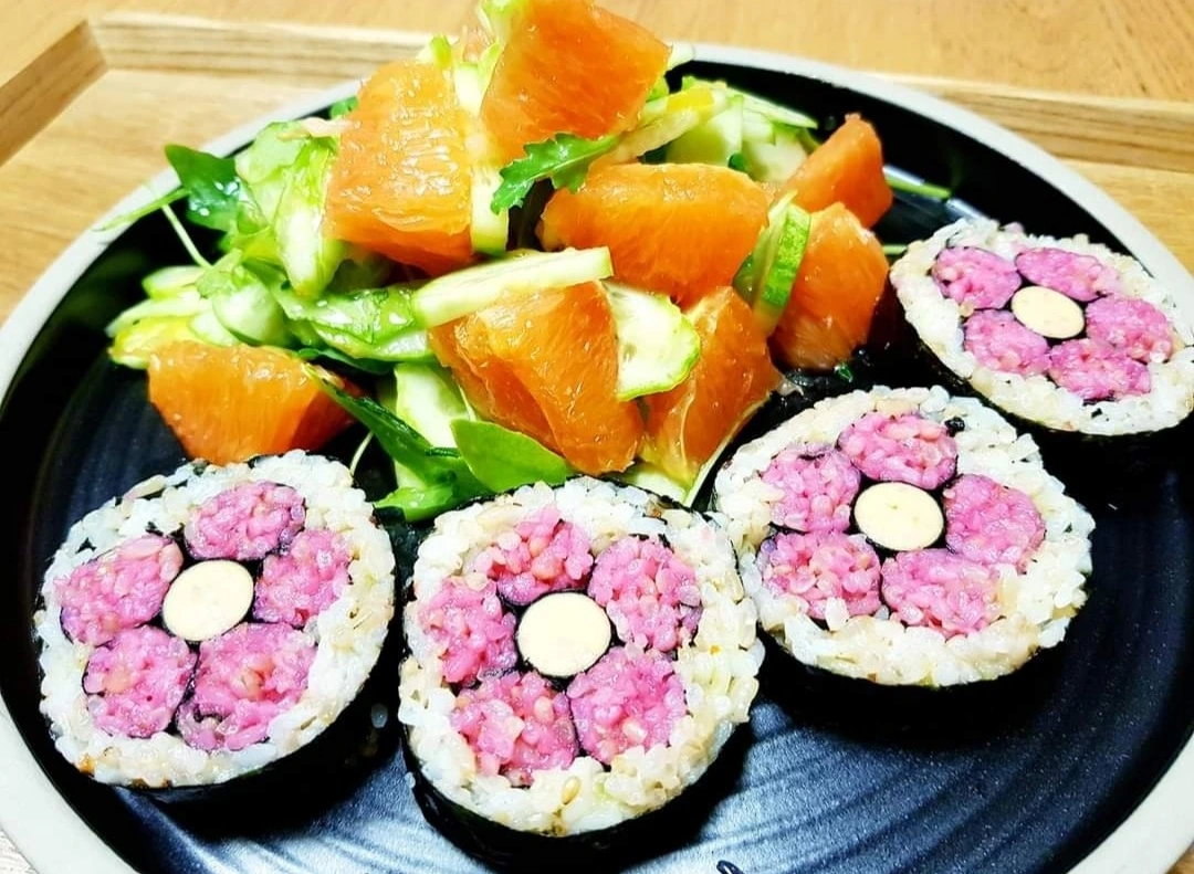 꽃잎 다섯개와 소시지 한 개를 각각 말아서