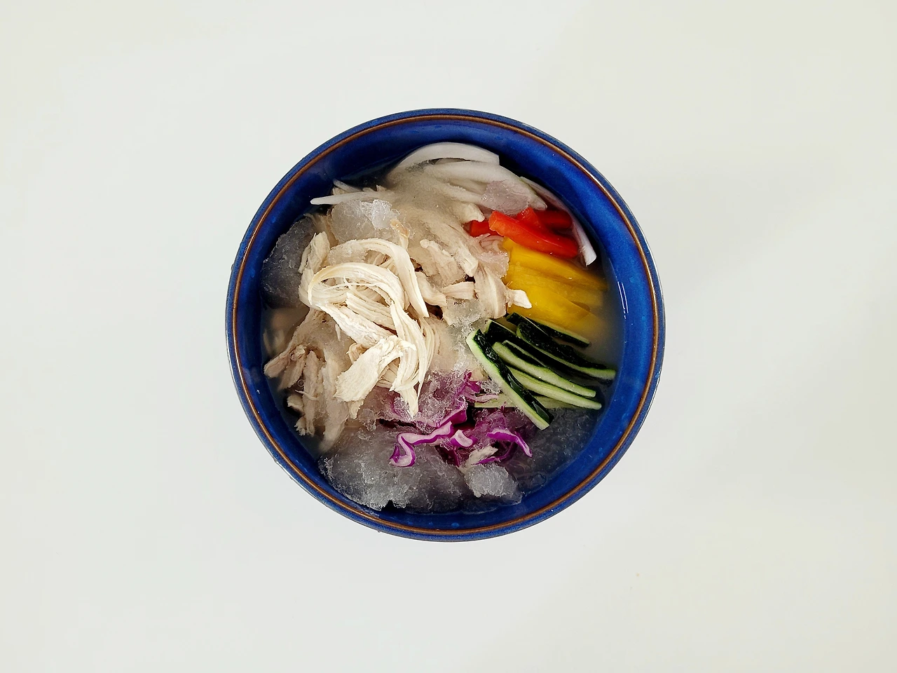 소면만 삶아서 야채고명과 닭고기 고명 얹고