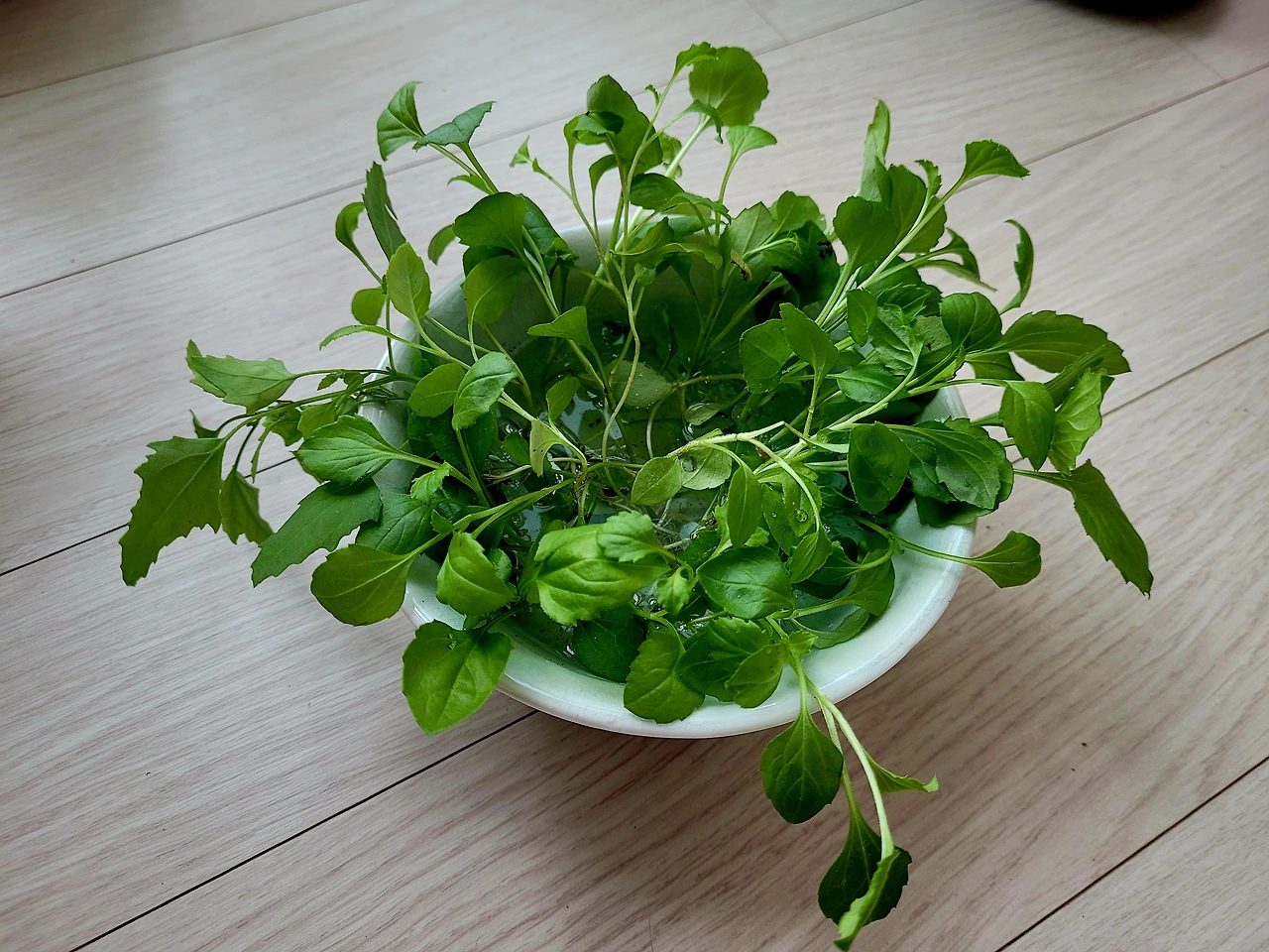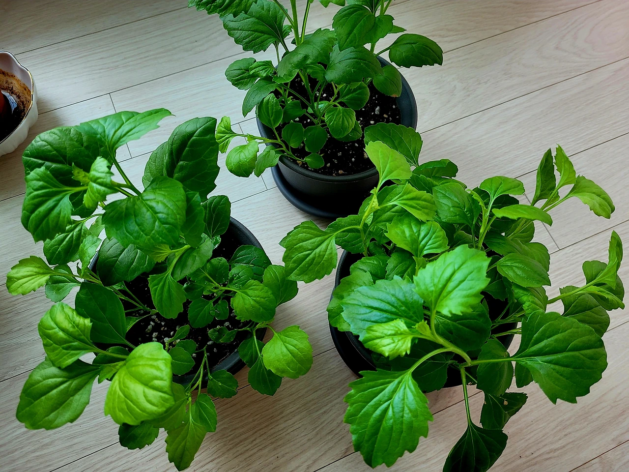 열심히 힘을 쓰며 자라고 있는 잎들을