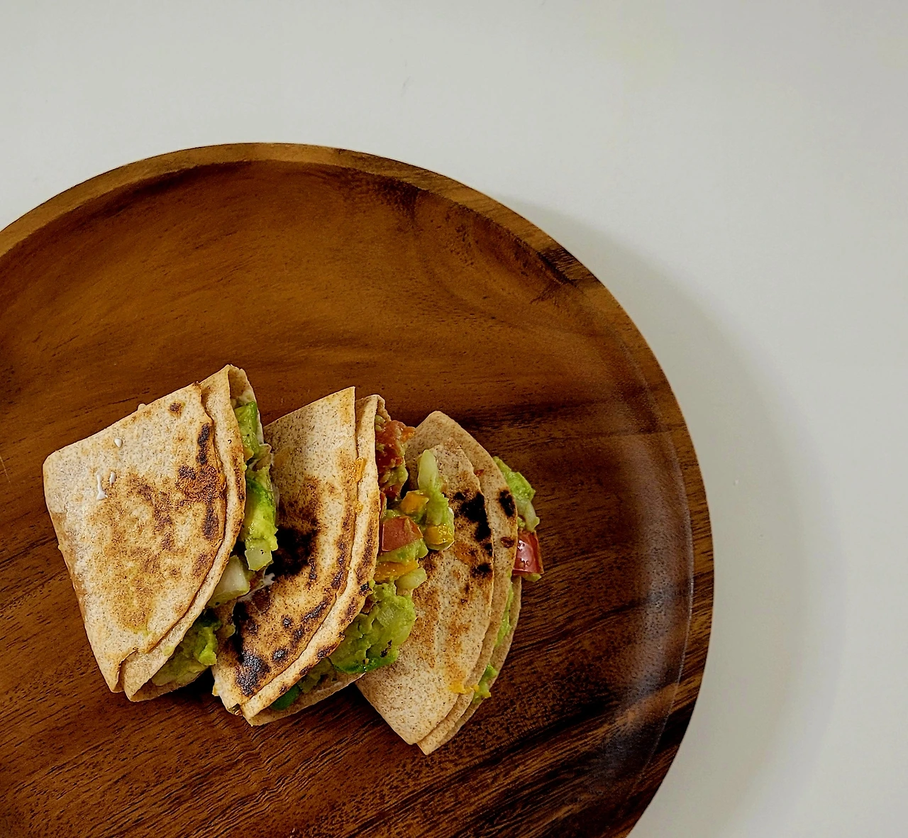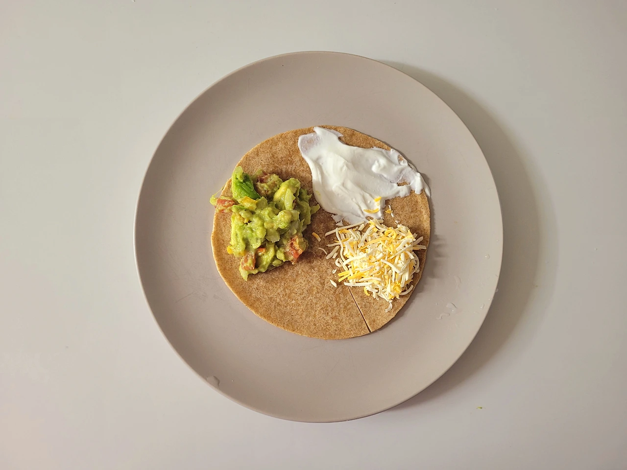 과카몰리, 샤워크림, 치즈를 놓고 한 면씩
