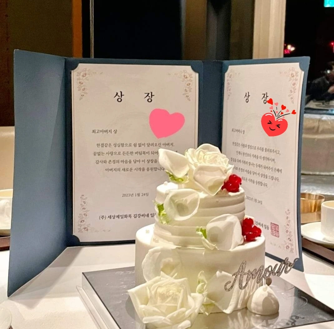 나에게도 상장을 주면서 " 아빠, 이게 다 엄마덕분이야~~ 엄마의 희생으로 아빠를 잘