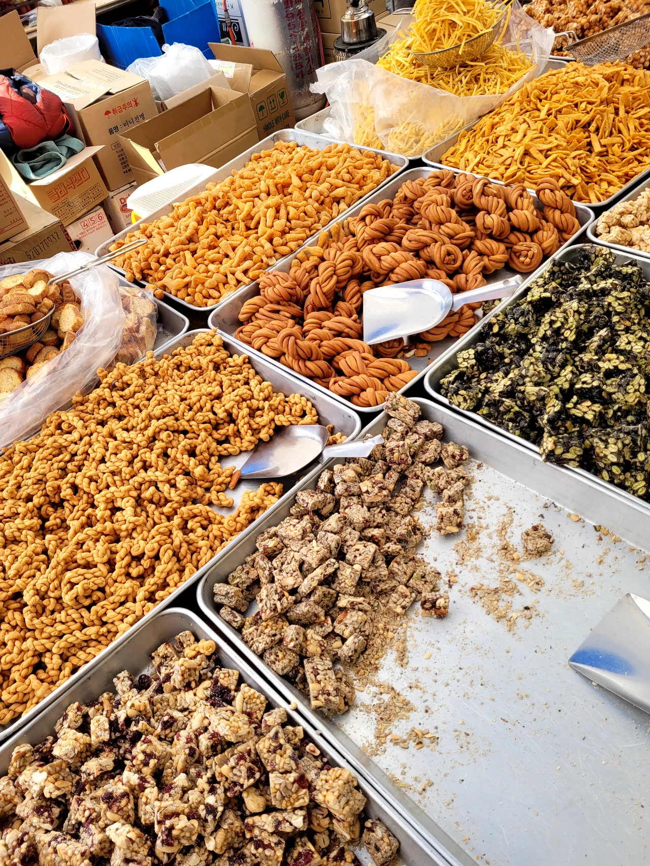 떡가게도 있고, 각종 곡물로 만든 강정,