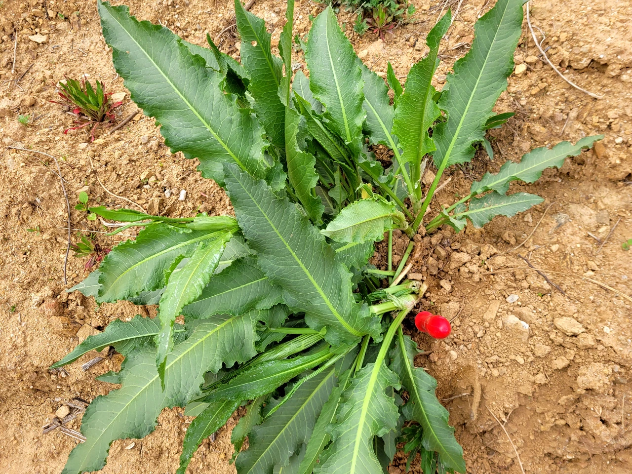 줄기가 무 같기도 하고 오래된 열무같기도 한 것들이 , 엄청나게 커다란 초록이들이 군데 군데 있다.