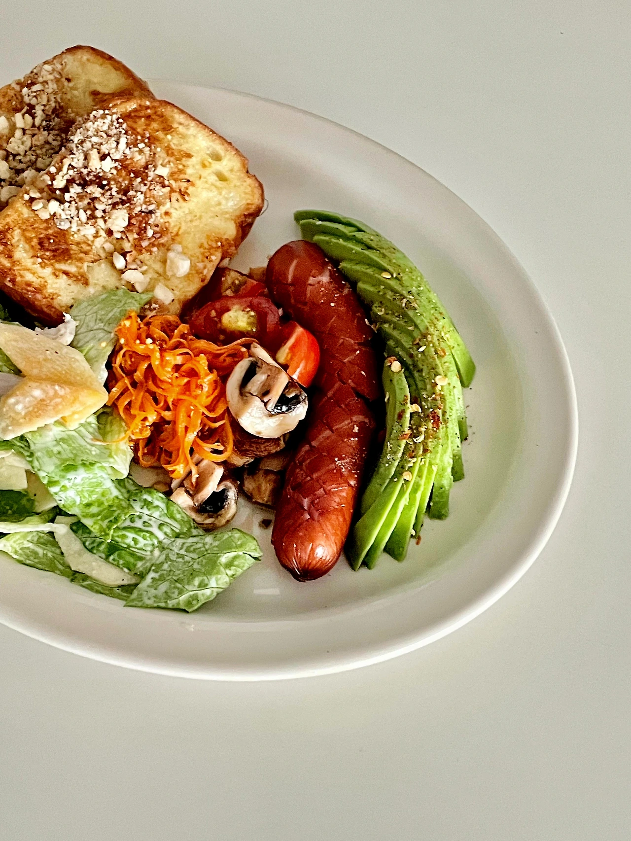 칼집을 내어 굽고, 당근라페 조금 남은거랑 아보카도도 함께 낸다.