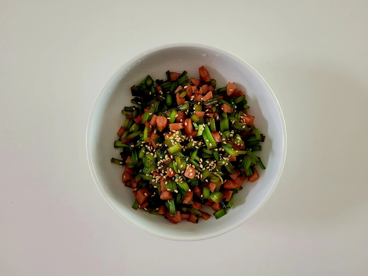 명이 줄기, 새송이 버섯 그리고 스팸을 다져서