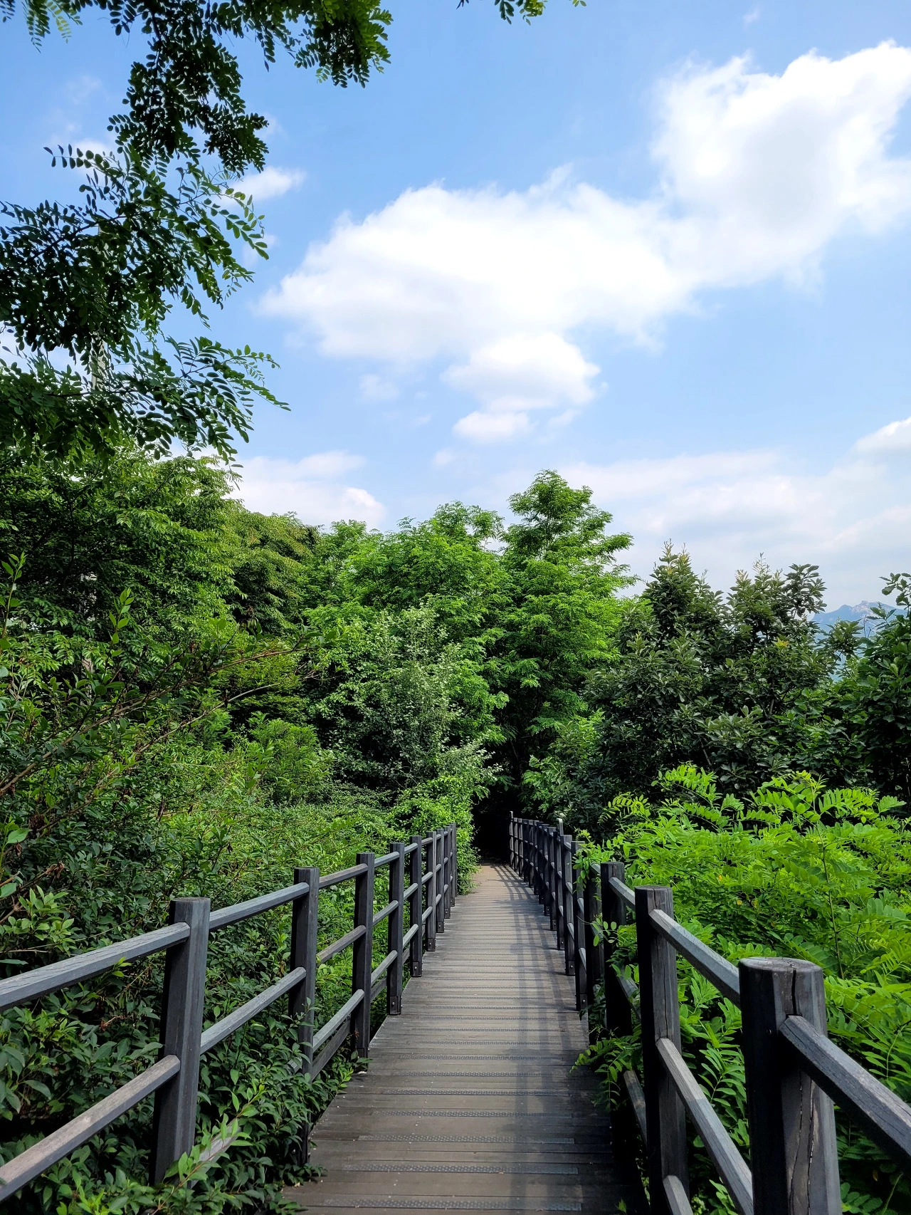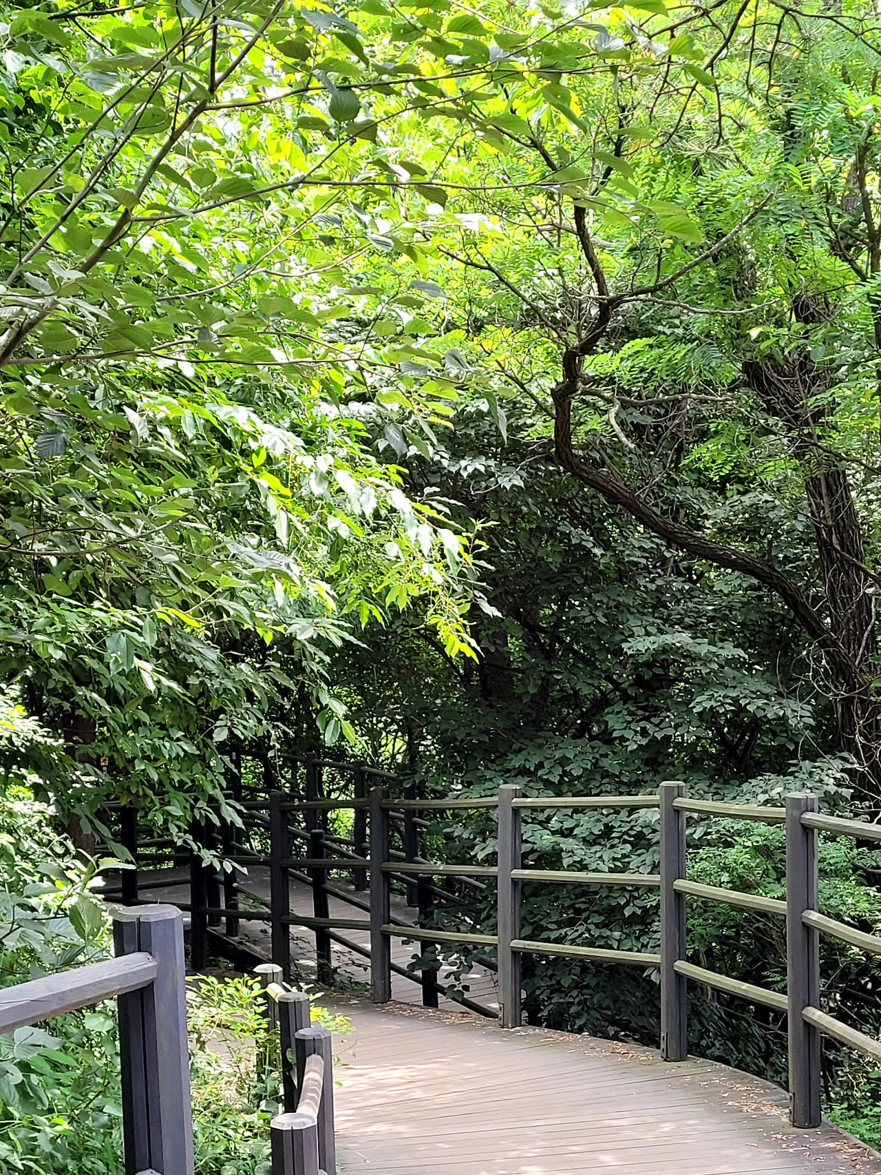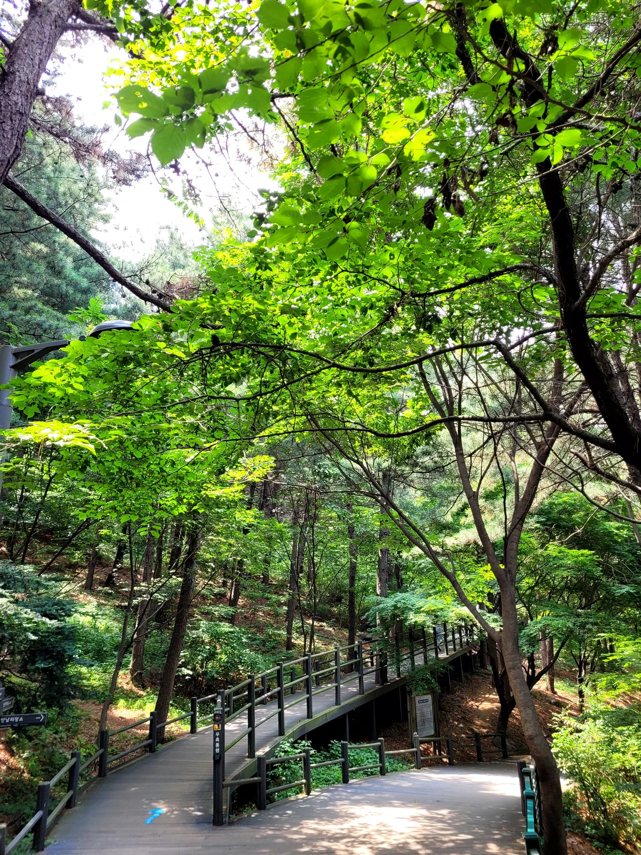 둘레길은 나무 데크를 깔아서 유모차도 지나갈 수 있는 길이다.