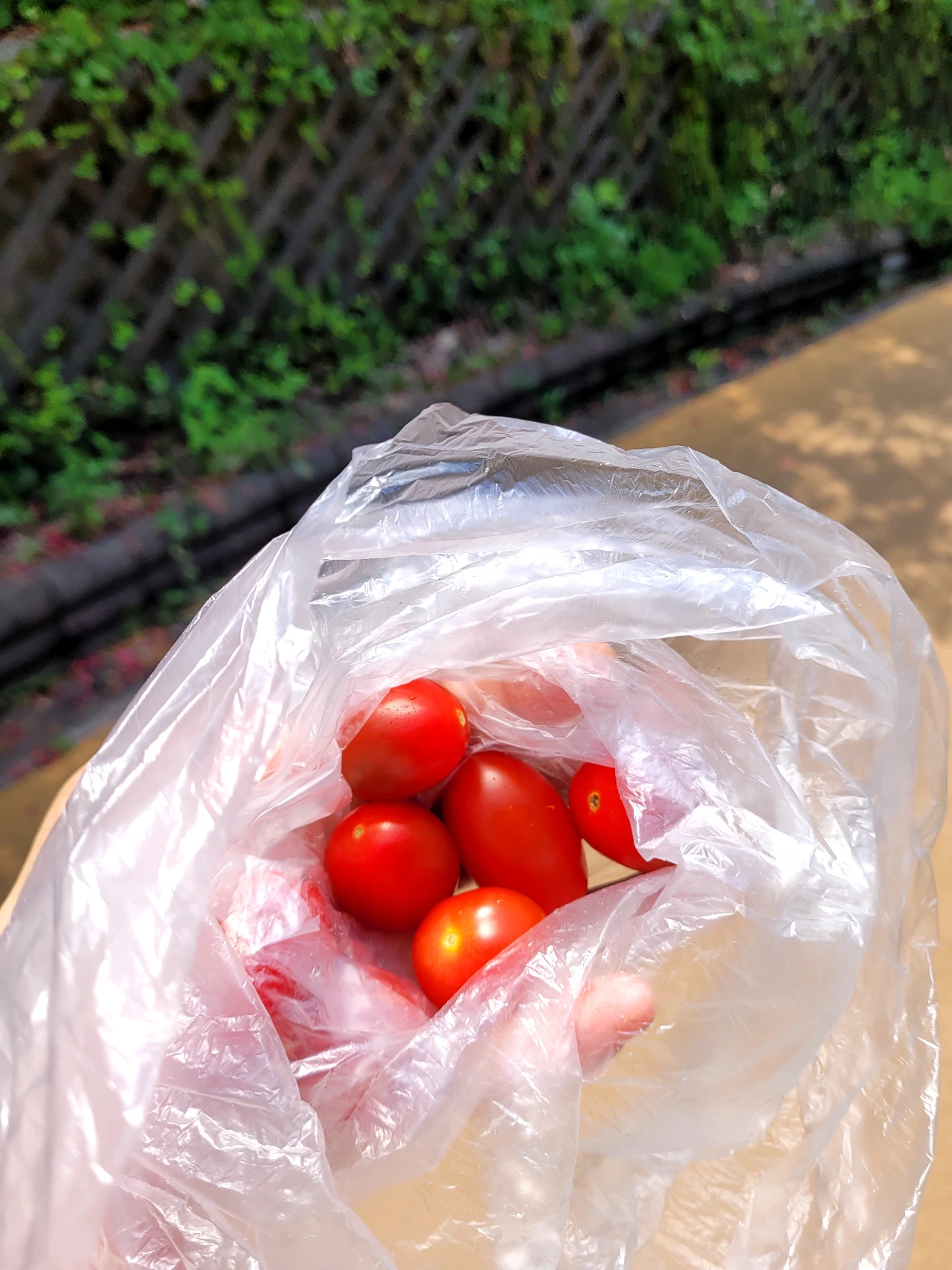 목이 말라 가져간 토마토를 먹으면서 걷다가